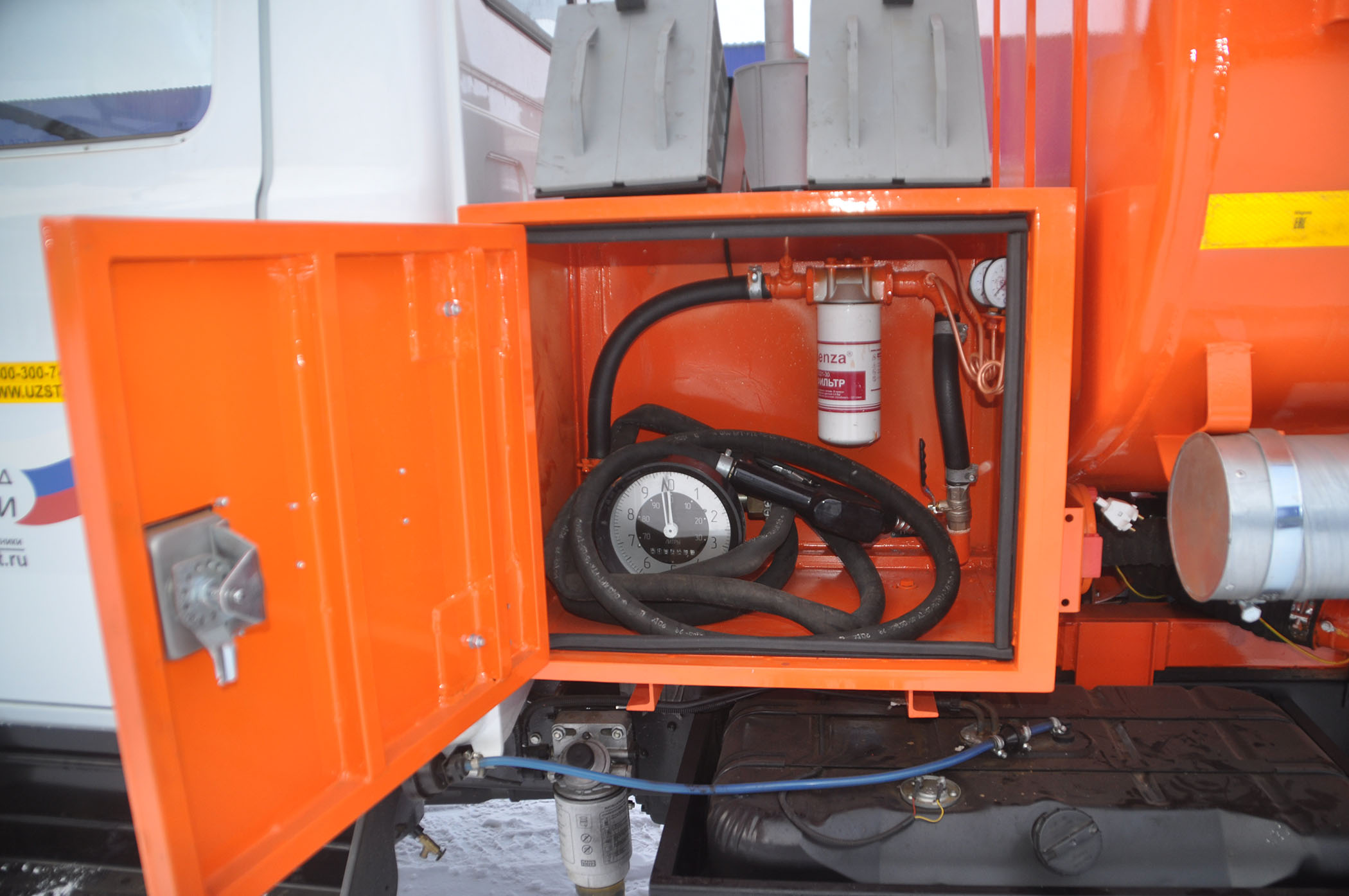 Количество узлов выдачи топлива - 1 (один) Счетчик жидкости ППО-25 Рукав антистатический ДУ-25, длина 4,5 м.; свободная укладка рукава в отсеке Пистолет раздаточный OPW-16 - 1 шт. Расположение – между кабиной и цистерной Освещение отсека |