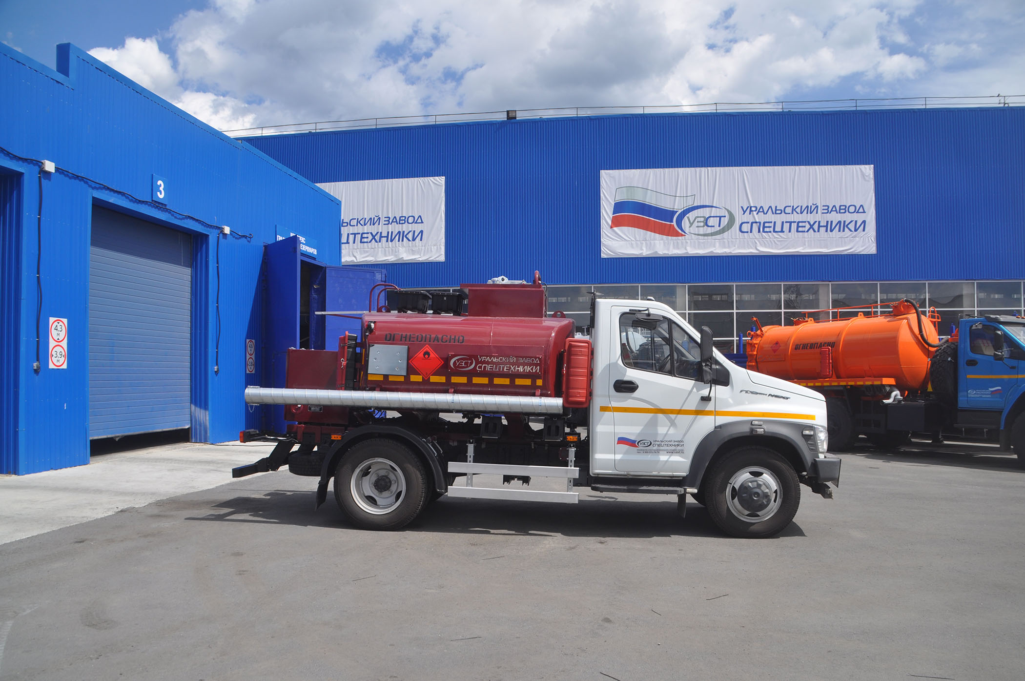 4х2, 149 л.с., 4,9 м³, 1 секция, насос СВН-80А, чемоданное сечение, УВТ вмонтирован в заднюю часть цистерны, укороченное шасси
