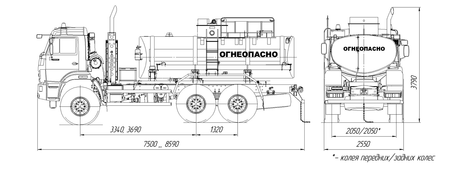 КАМАЗ 43118 без спального места, объем емости 11,5 куб.м., насос СВН-80, привод карданный, сечение цистерны чемоданное или элипсное, средства безопасности, доработка шасси под ЛВЖ.
