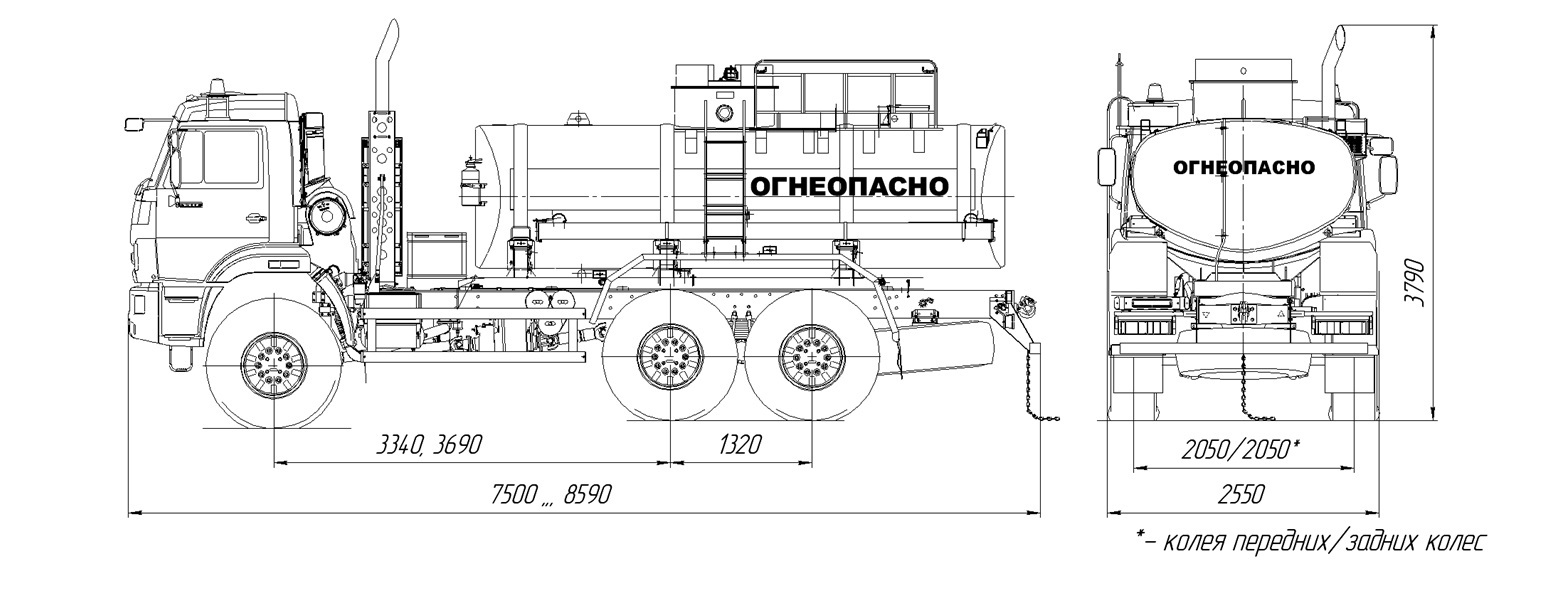КАМАЗ-5350 без спального места, объем емости 10 куб.м., насос СВН-80, привод карданный, сечение цистерны чемоданное или элипсное, средства безопасности, доработка шасси под ЛВЖ.