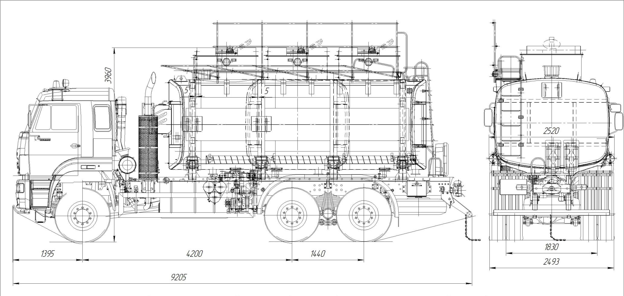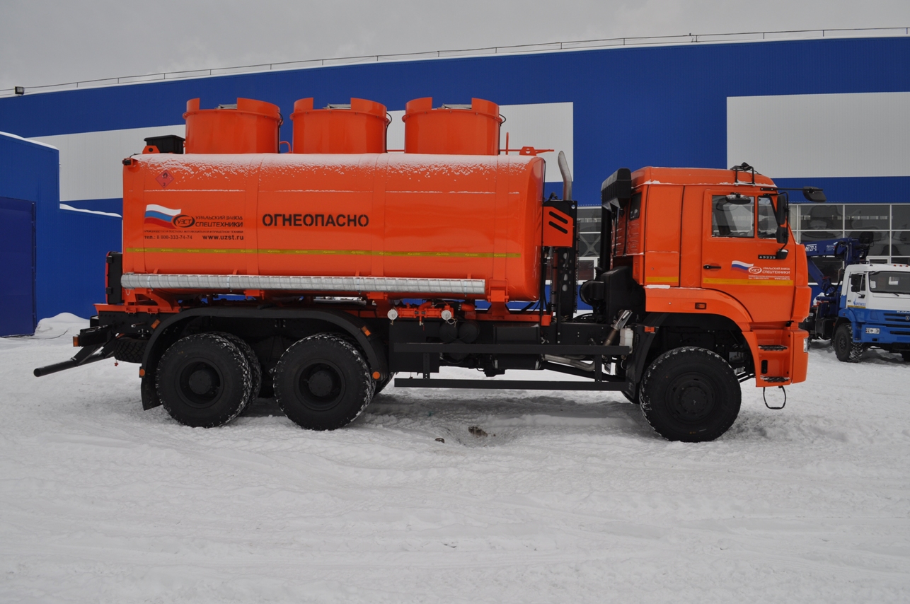 КАМАЗ 65225 со спальным местом, объем емости 20 куб.м., насос СВН-80, привод карданный, сечение цистерны чемоданное или элипсное, средства безопасности, доработка шасси под ЛВЖ.