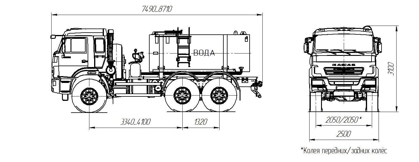 Автоцистерна для питьевой воды АЦПТ 5,5-6,5 УЗСТ 6620-12 на шасси КАМАЗ-5350 со спальным местом Автоцистерна для питьевой воды АЦПТ 5,5-6,5 УЗСТ 6620-12 на шасси КАМАЗ-5350 со спальным местом