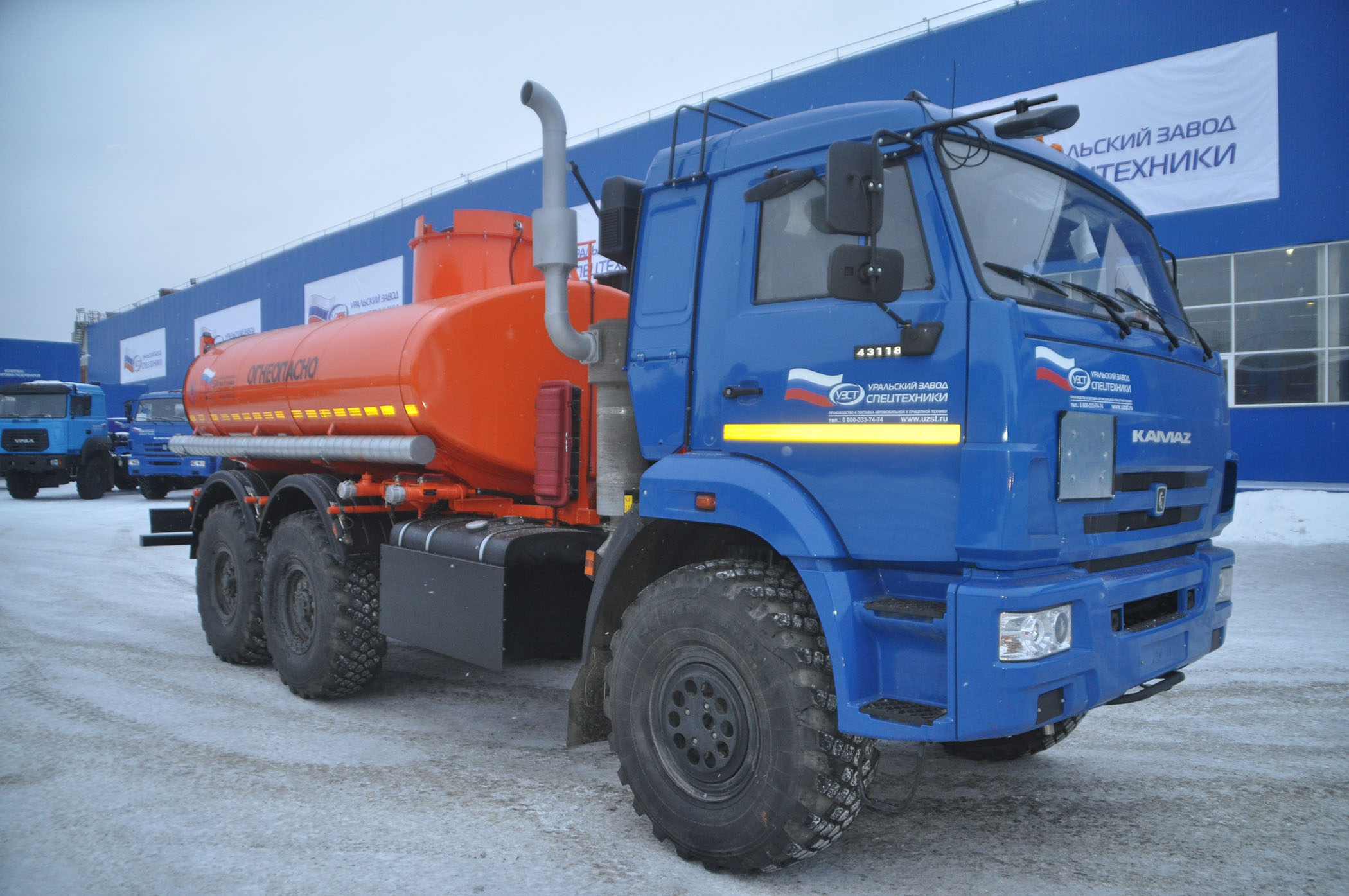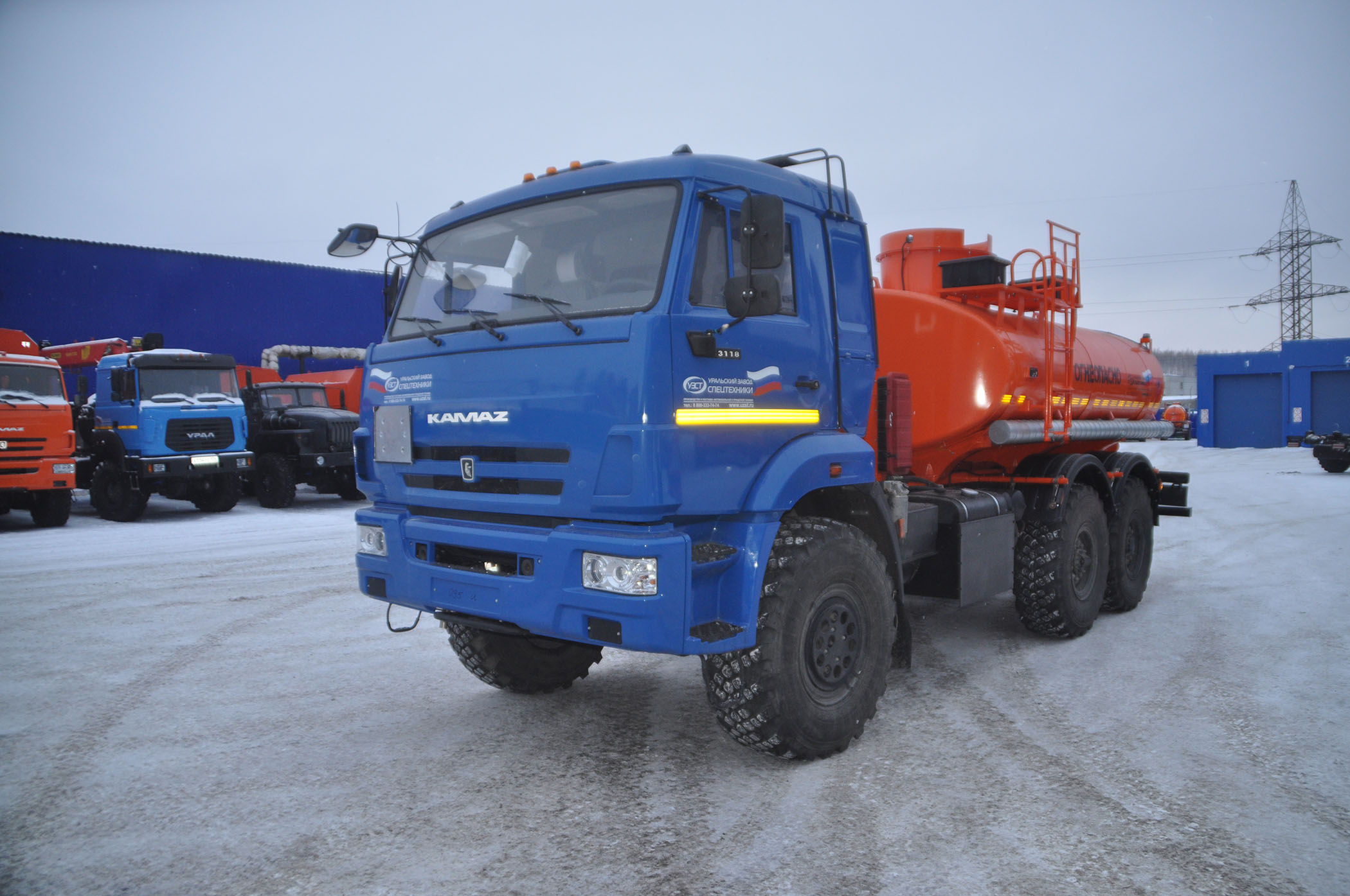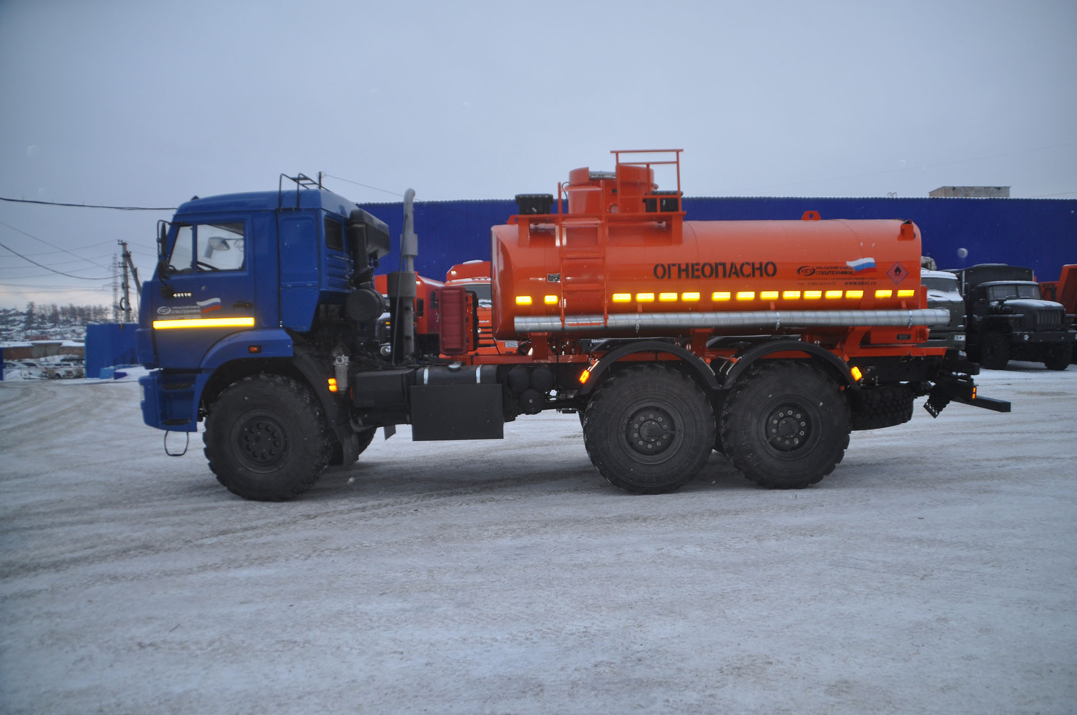 Камаз 43118-3938-46 без спального места, объем емкости 11 куб.м. 2 секции, насос СВН-80, привод карданный, сечение цистерны чемоданное или элипсное, средства безопасности, доработка шасси под ЛВЖ.