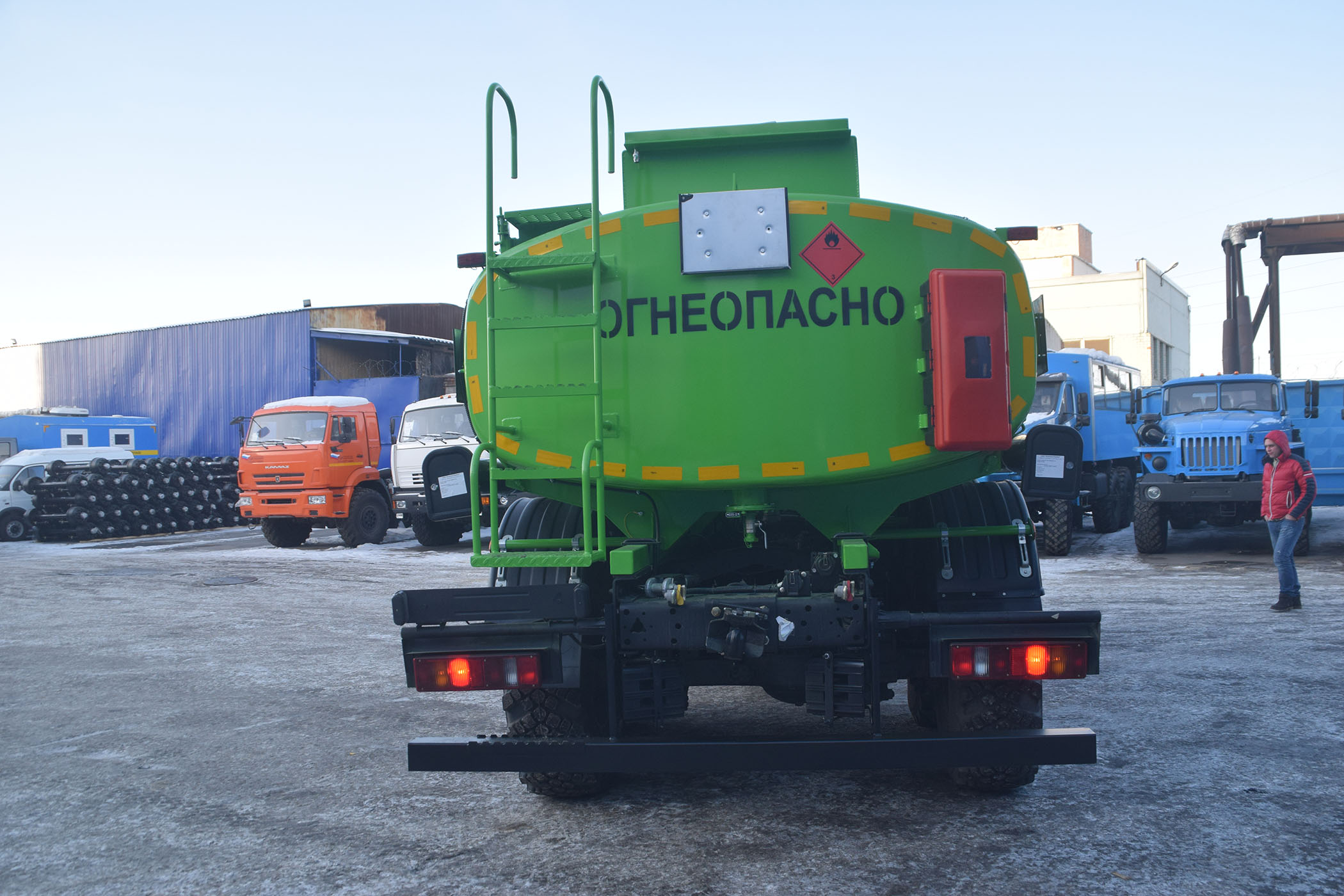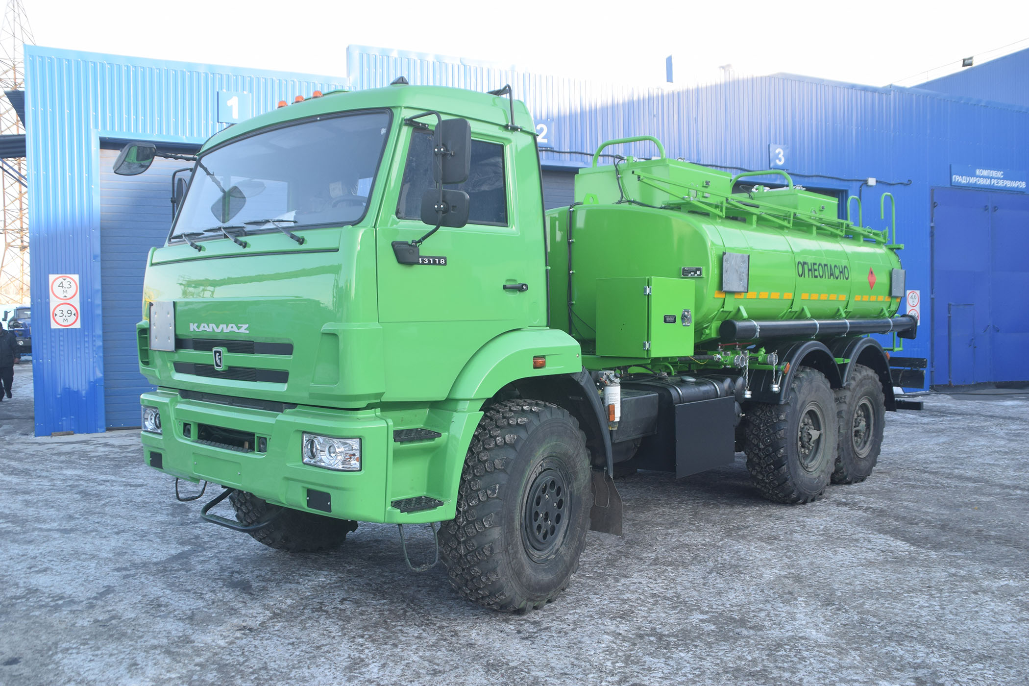 Камаз 43118-3017-46 без спального места, объем емкости 11 куб.м. 1 секция, насос СВН-80, привод карданный, сечение цистерны чемоданное или элипсное, средства безопасности, доработка шасси под ЛВЖ.