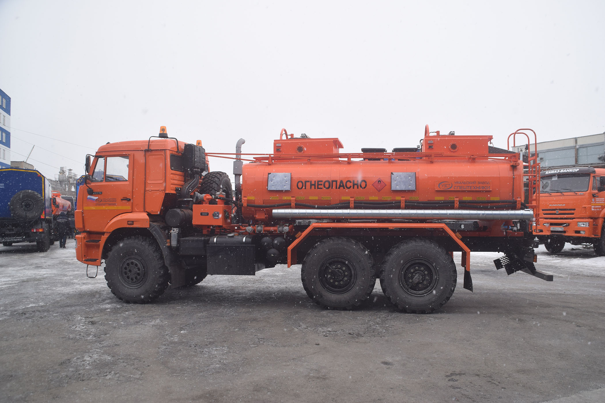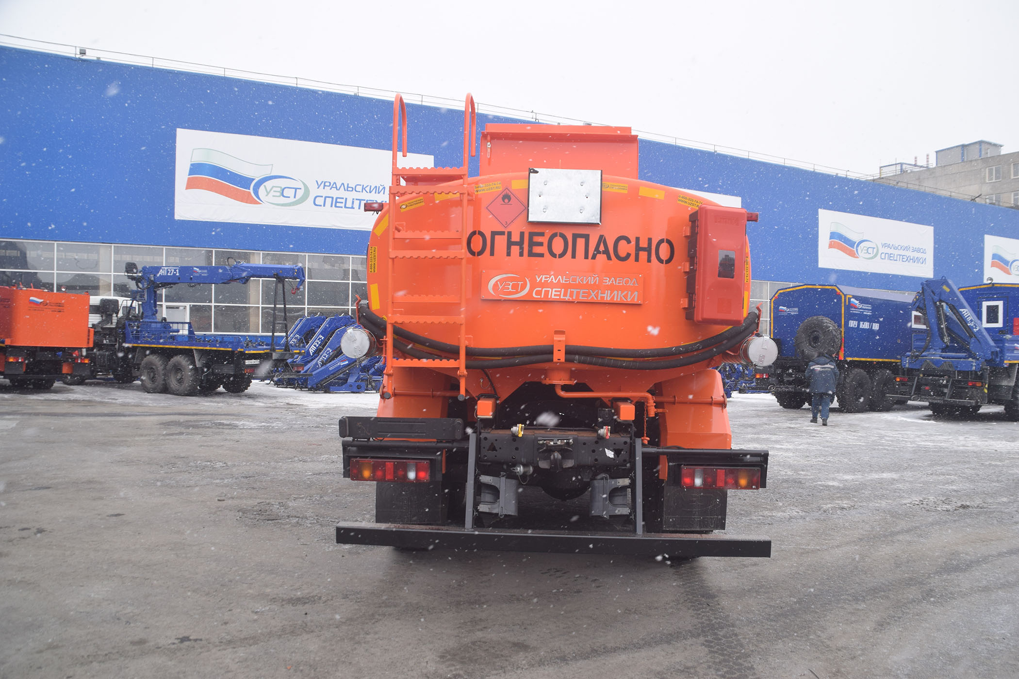 6х6, 300 л.с., 11 м³, 2 секции, насос УЗСТ СВН-80, чемоданное сечение, УВТ между кабиной и цистерной с левой стороны, счетчик и фильтр над УВТ, антистатический рукав 20 м