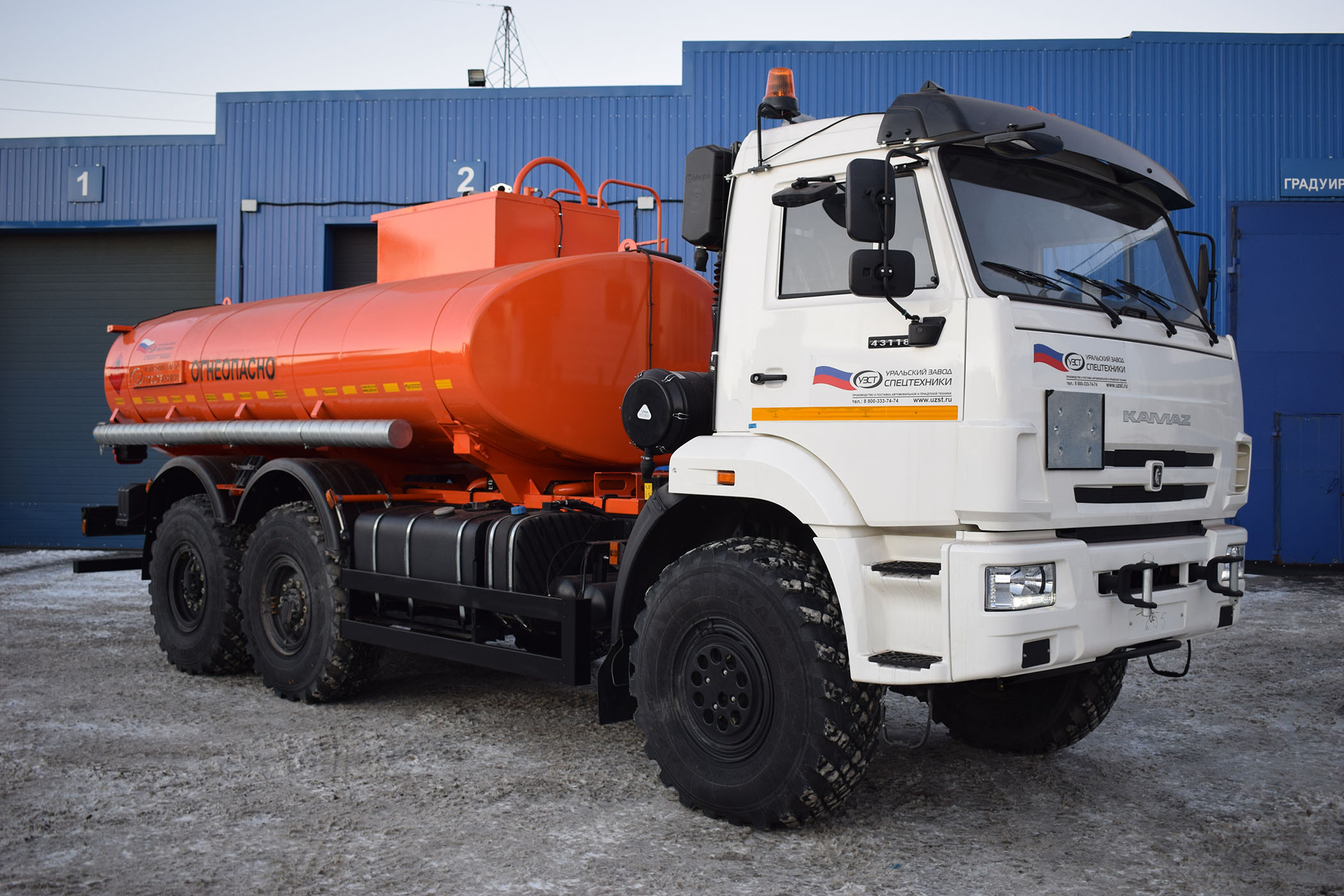 Камаз 43118-3938-46 без спального места, объем емкости 11 куб.м. 1 секция, насос СВН-80, привод карданный, сечение цистерны чемоданное или элипсное, средства безопасности, доработка шасси под ЛВЖ.