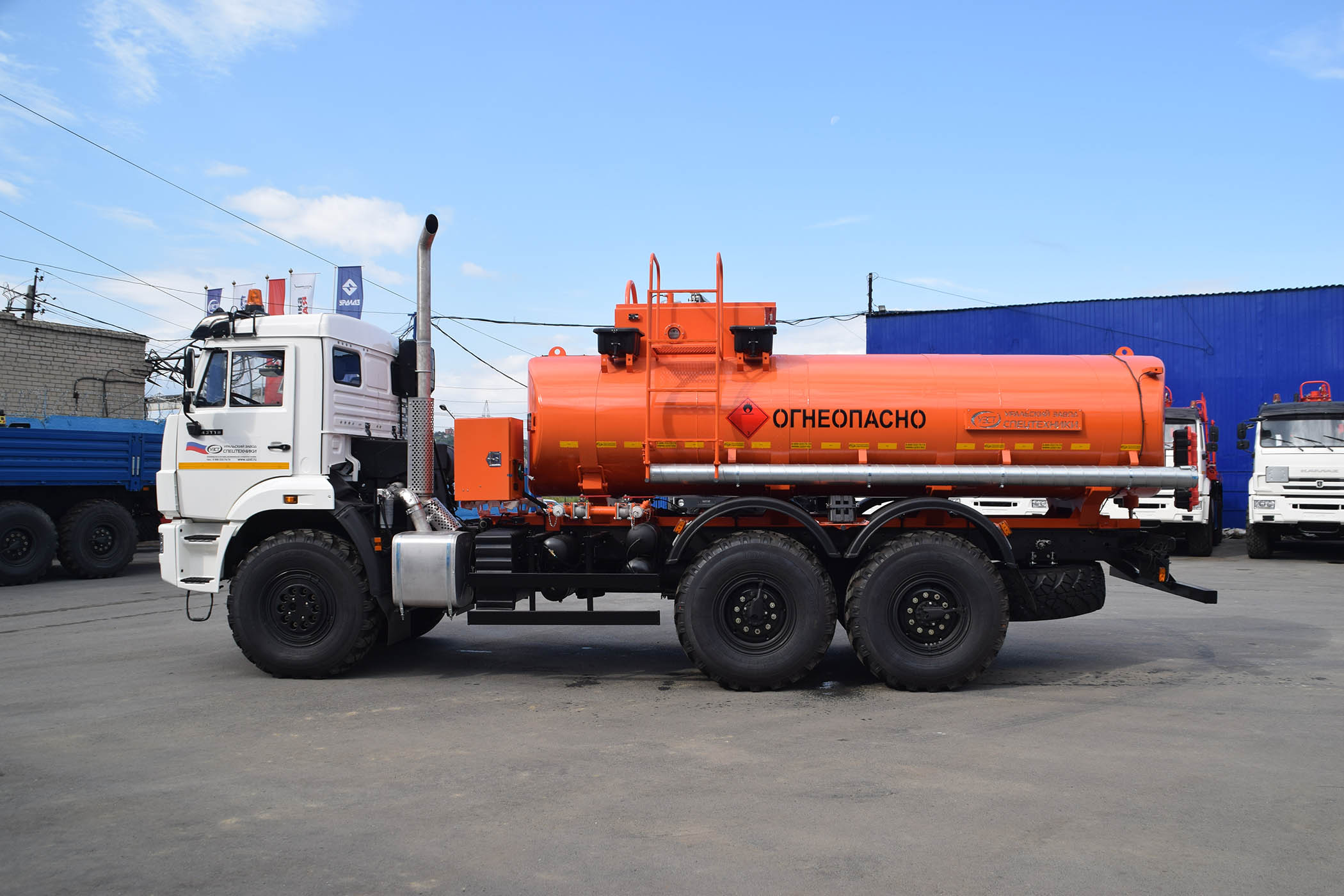 Камаз 43118-3938-46 без спального места, объем емкости 12 куб.м. 1 секция, насос СВН-80, привод карданный, сечение цистерны чемоданное или элипсное, средства безопасности, доработка шасси под ЛВЖ.