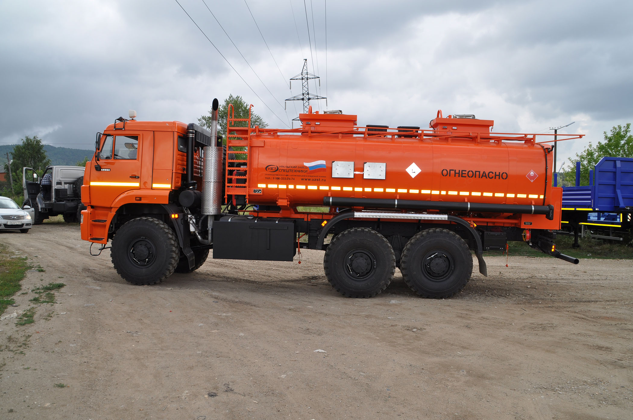 6х6, 400 л.с., 17 м³, 2 секции, насос УЗСТ СВН-80, чемоданное сечение, УВТ вмонтирован в заднюю часть цистерны