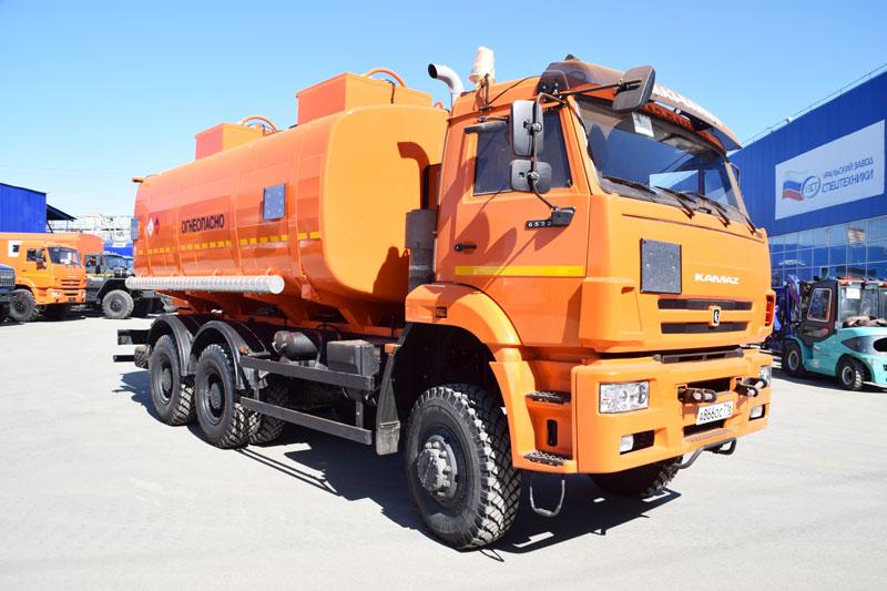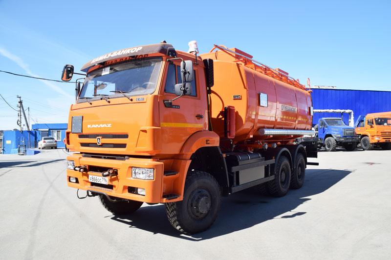 6х6, 375 л.с., 20 м³, 2 секции, насос УЗСТ СВН-80, чемоданное сечение, УВТ вмонтирован в заднюю часть цистерны