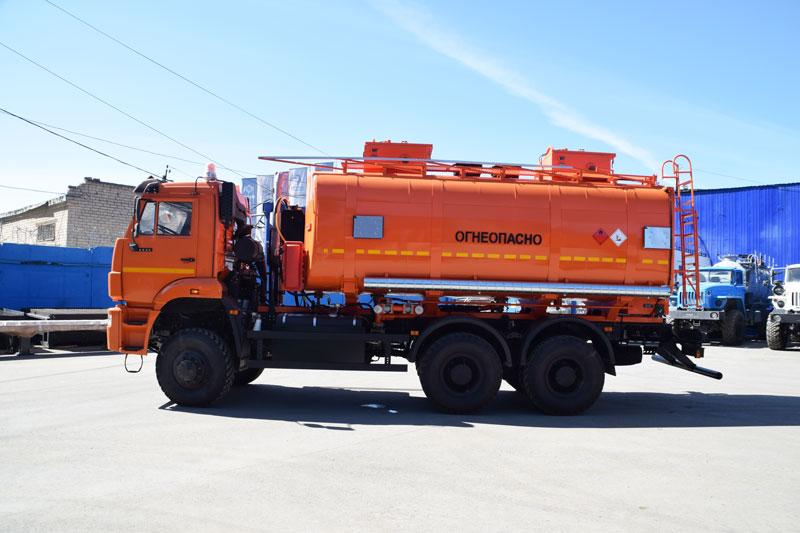 Камаз 43118-3938-46 без спального места, объем емкости 11,5 куб.м. 1 секция, насос СВН-80, привод карданный, сечение цистерны чемоданное или элипсное, средства безопасности, доработка шасси под ЛВЖ.