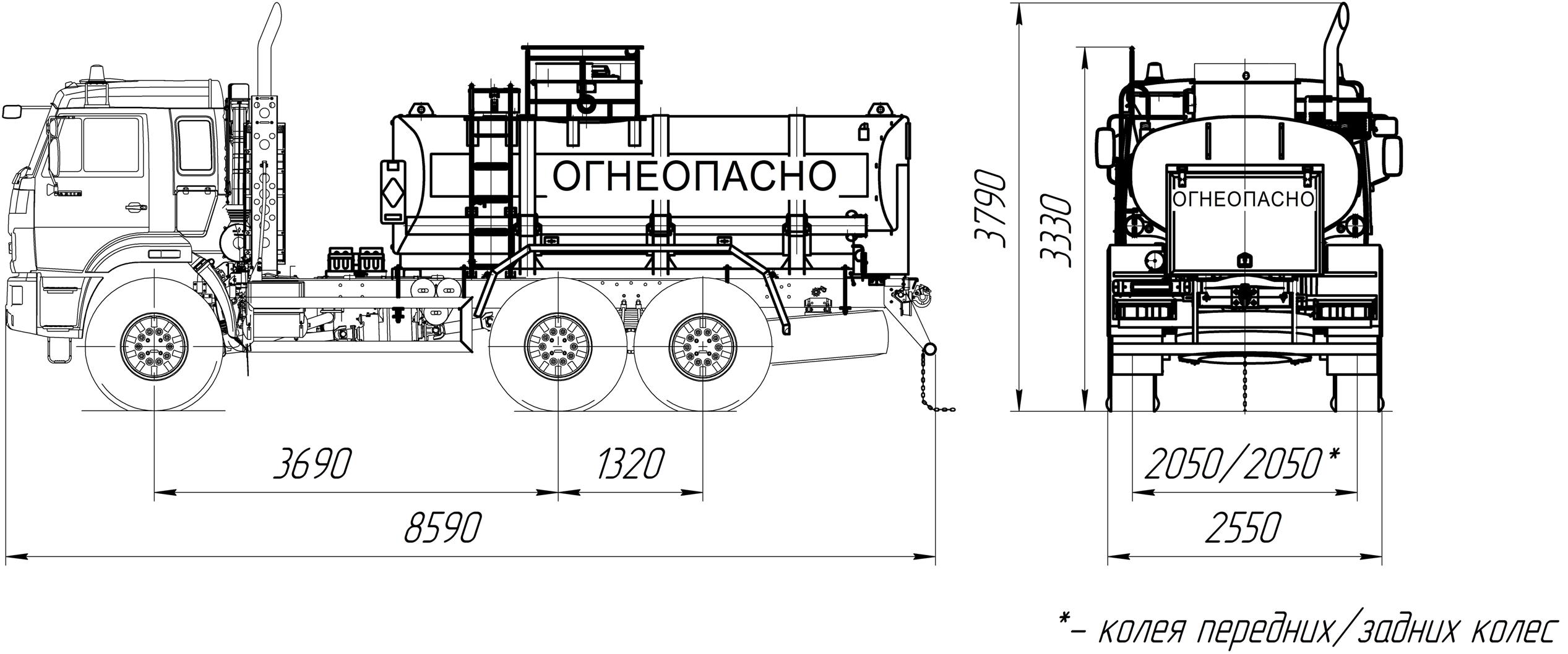 6х6, 300 л.с., 16 м³, 2 секции, насос УЗСТ СВН-80, чемоданное сечение, УВТ между кабиной и цистерной с левой стороны