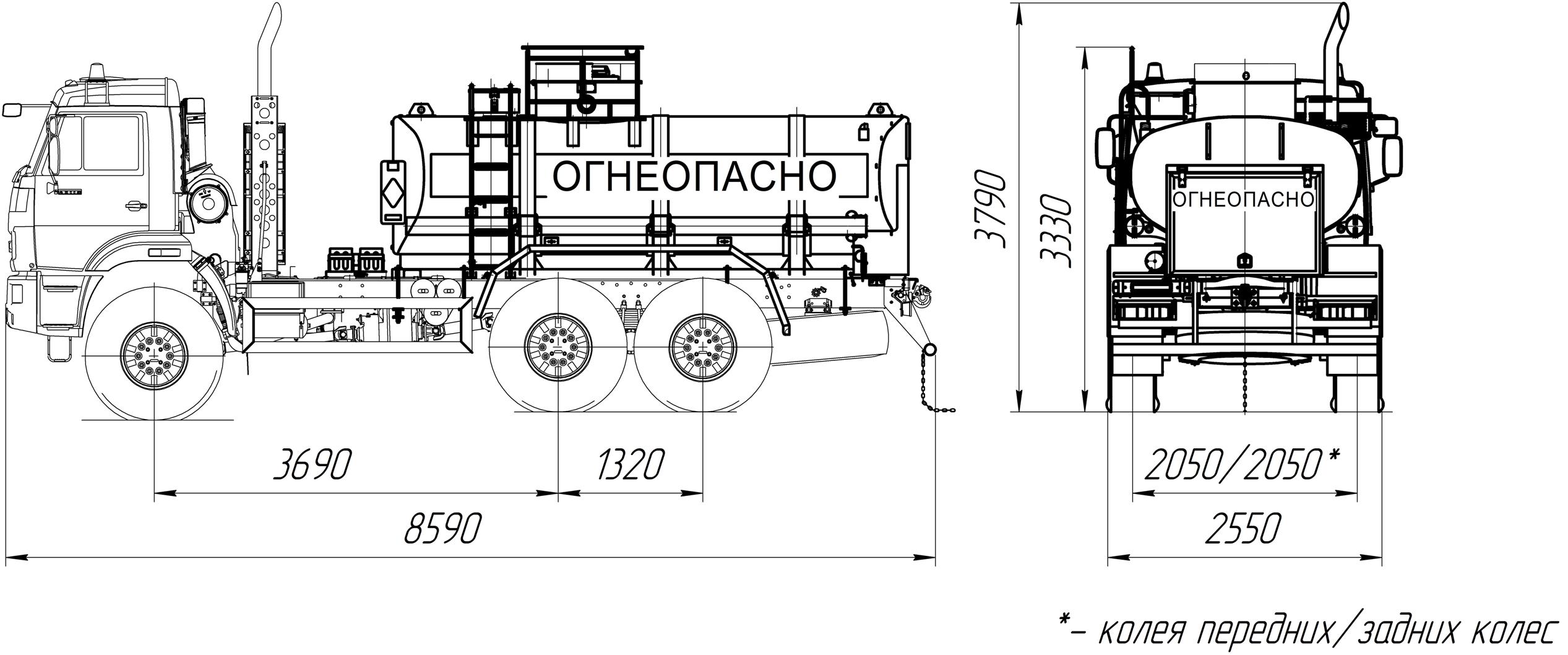 6х6, 300 л.с., 12 м³, 2 секции, насос УЗСТ СВН-80, чемоданное сечение, УВТ между кабиной и цистерной с левой стороны