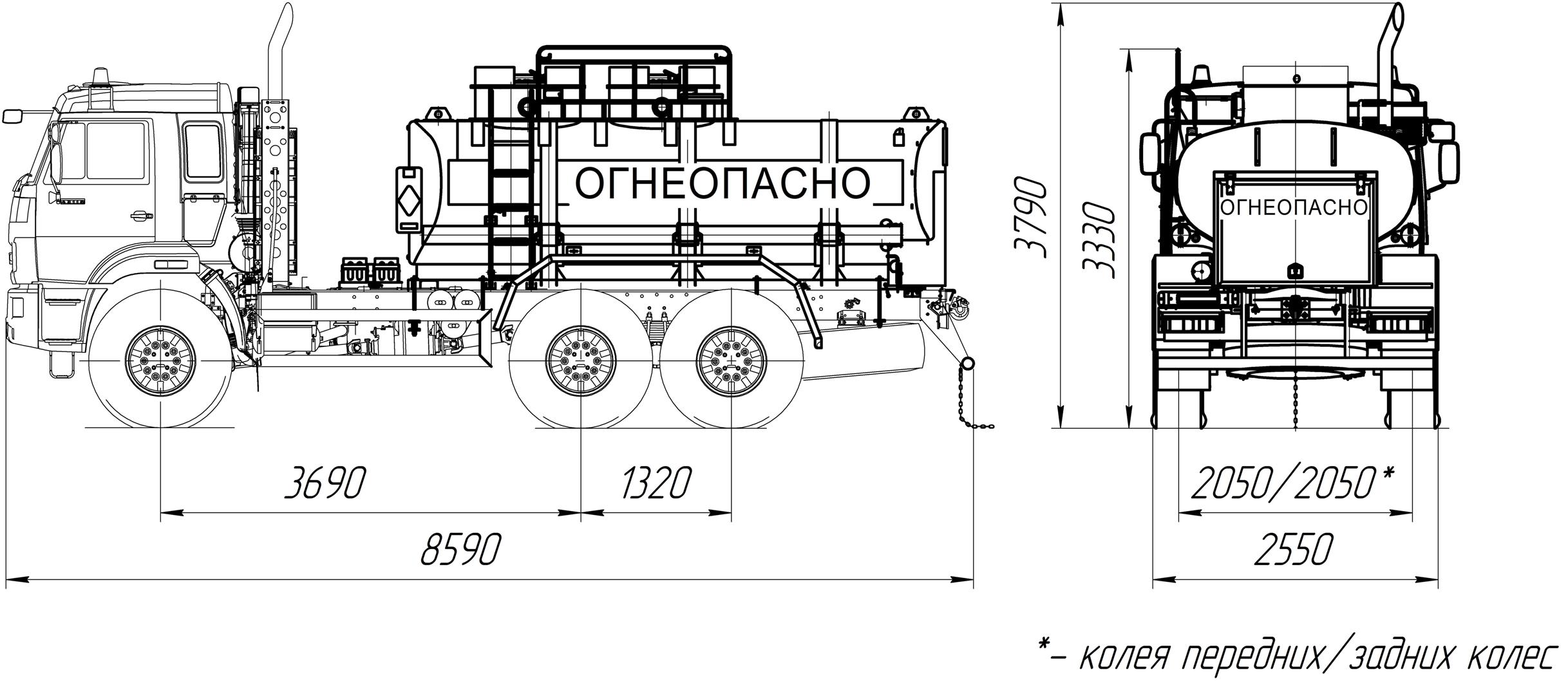6х6, 300 л.с., 16 м³, 2 секции, насос УЗСТ СВН-80, чемоданное сечение, УВТ между кабиной и цистерной с левой стороны