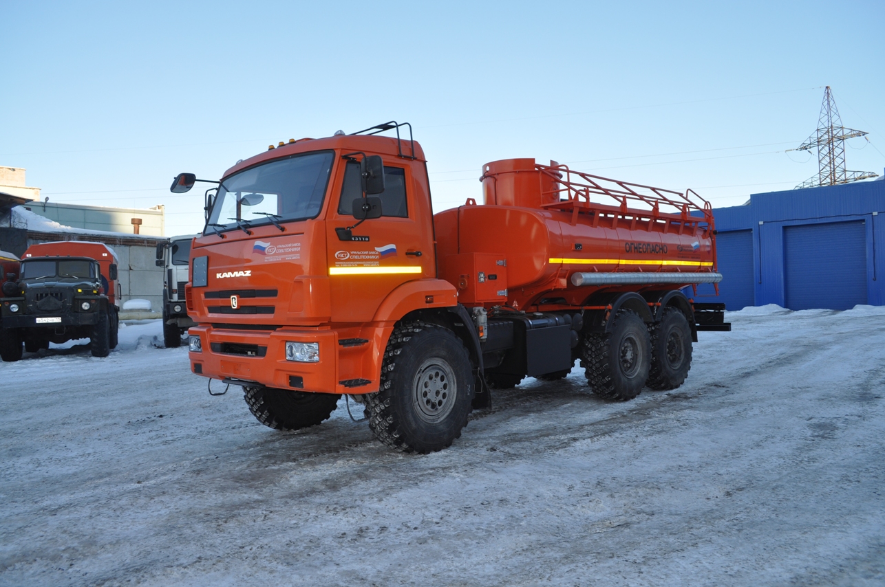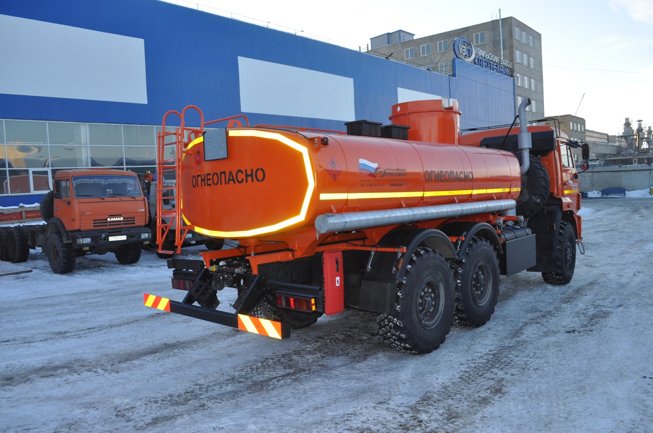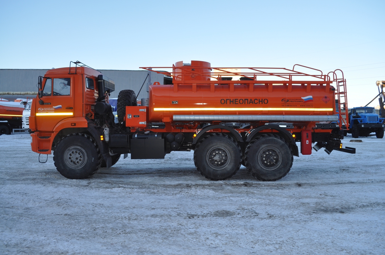 Камаз 43118-3017-46 без спального места, объем емкости 11 куб.м. 1 секция, насос СВН-80, привод карданный, сечение цистерны чемоданное или элипсное, средства безопасности, доработка шасси под ЛВЖ.