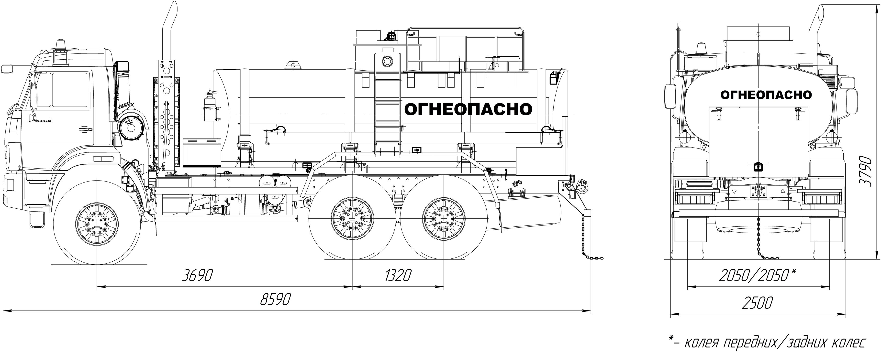 6х6, 300 л.с., 12 м³, 2 секции, насос УЗСТ СВН-80, чемоданное сечение, УВТ между кабиной и цистерной с левой стороны