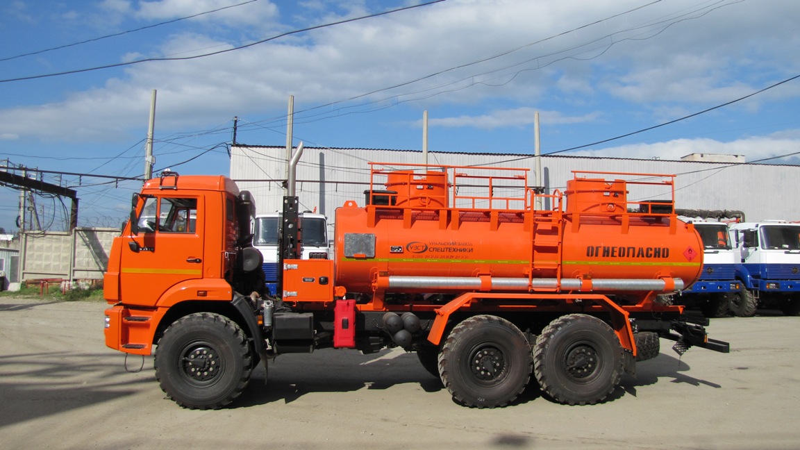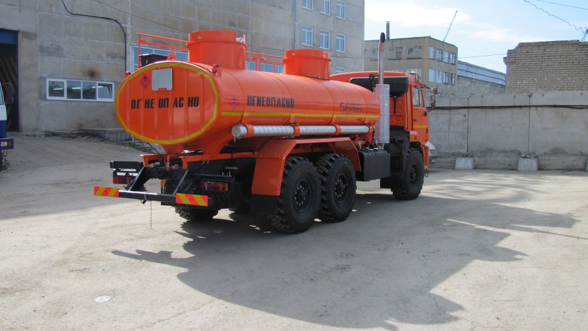 Камаз 43118-3938-46 без спального места, объем емкости 11 куб.м. 1 секция, насос СВН-80, привод карданный, сечение цистерны чемоданное или элипсное, средства безопасности, доработка шасси под ЛВЖ.