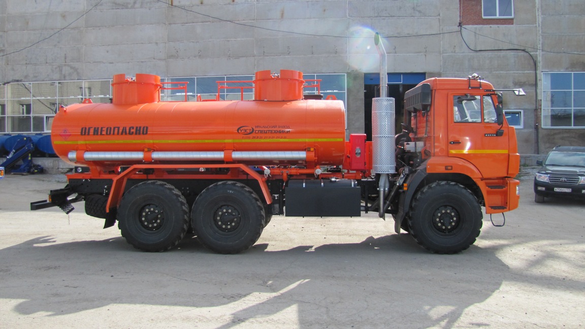 6х6, 300 л.с., 11 м³, 2 секции, насос УЗСТ СВН-80 – 2 шт., эллиптическое сечение, УВТ вмонтирован в заднюю часть цистерны