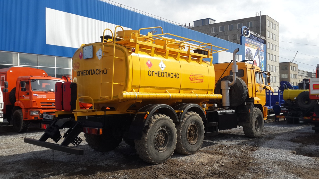 КАМАЗ 65224-3970-43 со спальным местом, объем емкости 17 куб.м. 1 секция, насос СВН-80, привод карданный, сечение цистерны чемоданное или элипсное, средства безопасности, доработка шасси под ЛВЖ.
