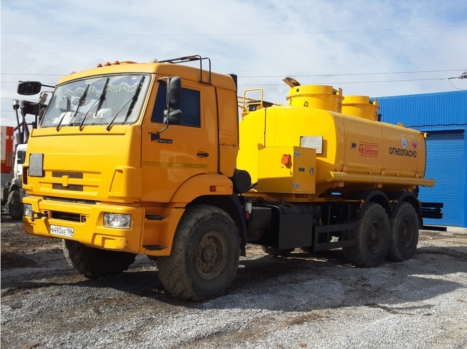 КАМАЗ 6522-3010-43 без спального места, объем емкости 20 куб.м. 1 секция, насос СВН-80, привод карданный, сечение цистерны чемоданное или элипсное, средства безопасности, доработка шасси под ЛВЖ.