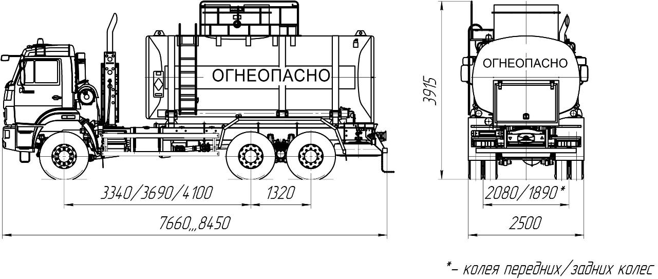 6х6, 280 л.с., 15 м³, 1 секция, насос СЦЛ-00, чемоданное сечение, УВТ между кабиной и цистерной с левой стороны