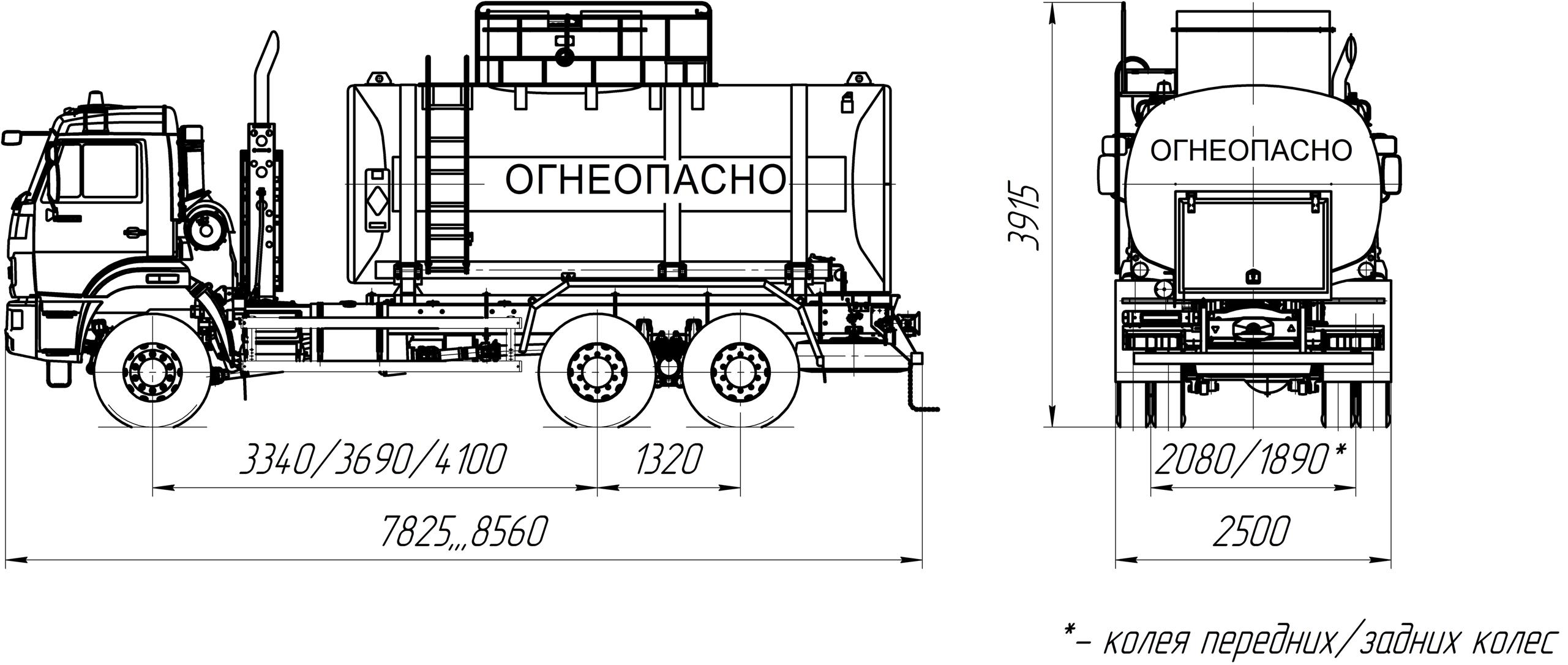 6х6, 300 л.с., 15 м³, 2 секции, насос УЗСТ СВН-80, чемоданное сечение, УВТ между кабиной и цистерной с левой стороны