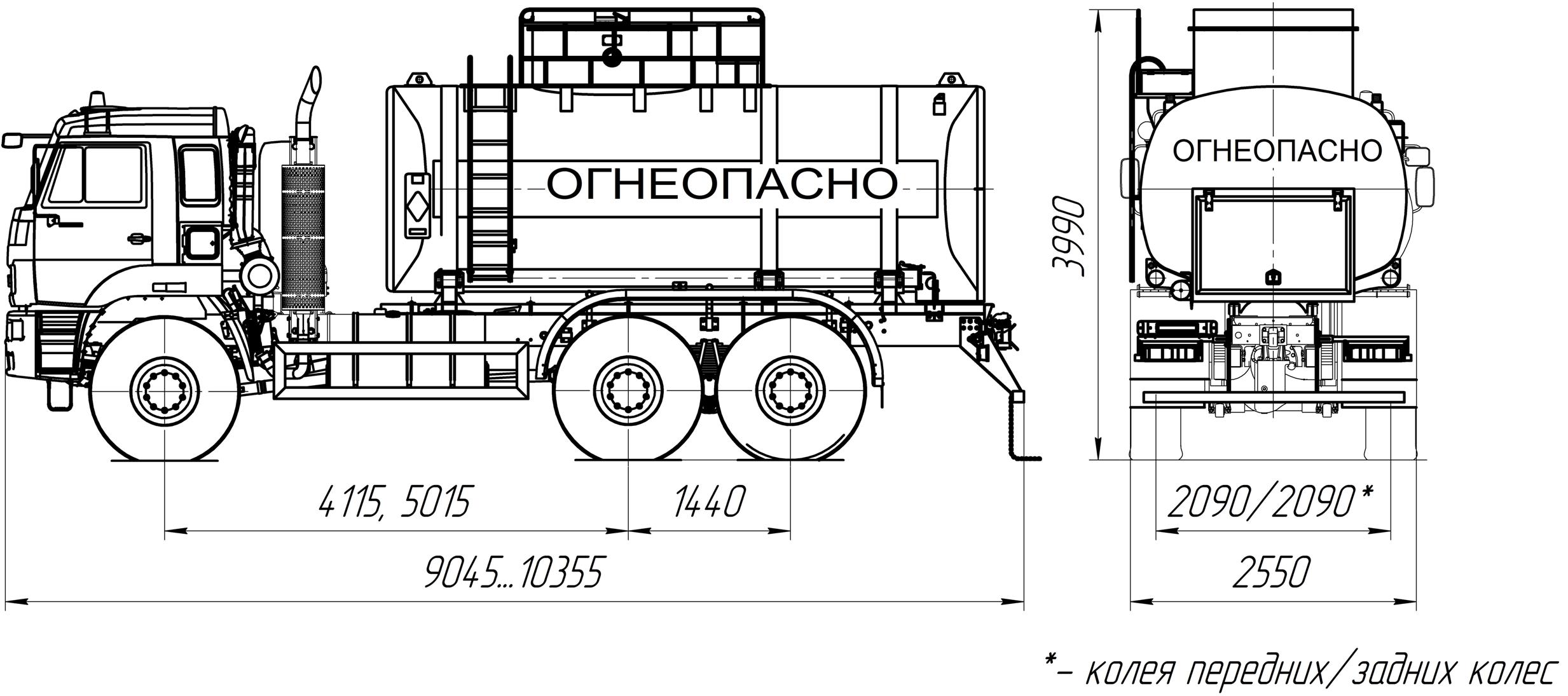 6х6, 300 л.с., 11 м³, 2 секции, насос УЗСТ СВН-80 – 2 шт., эллиптическое сечение, УВТ вмонтирован в заднюю часть цистерны