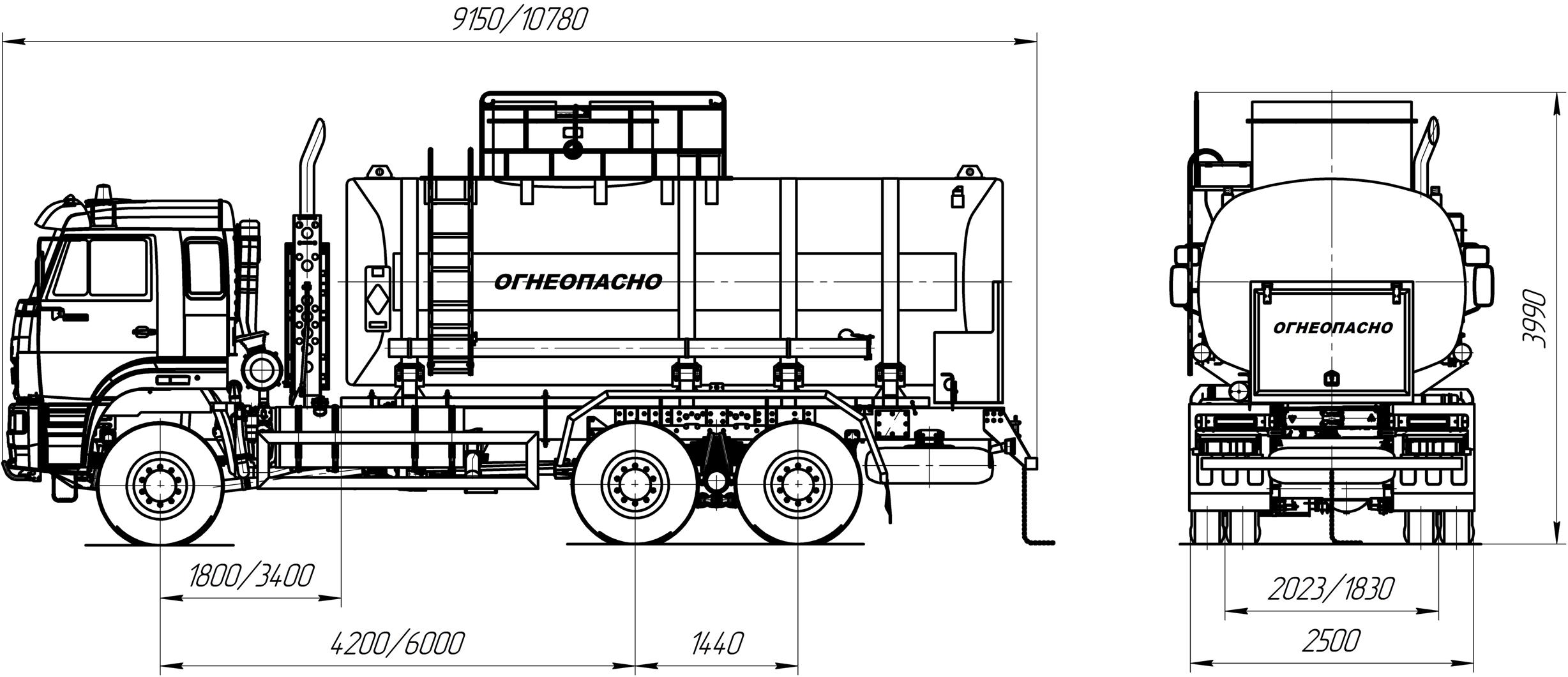 6х6, 300 л.с., 11,2 м³, 2 секции, насос УЗСТ СВН-80, чемоданное сечение, УВТ между кабиной и цистерной с левой стороны – 2 шт.
