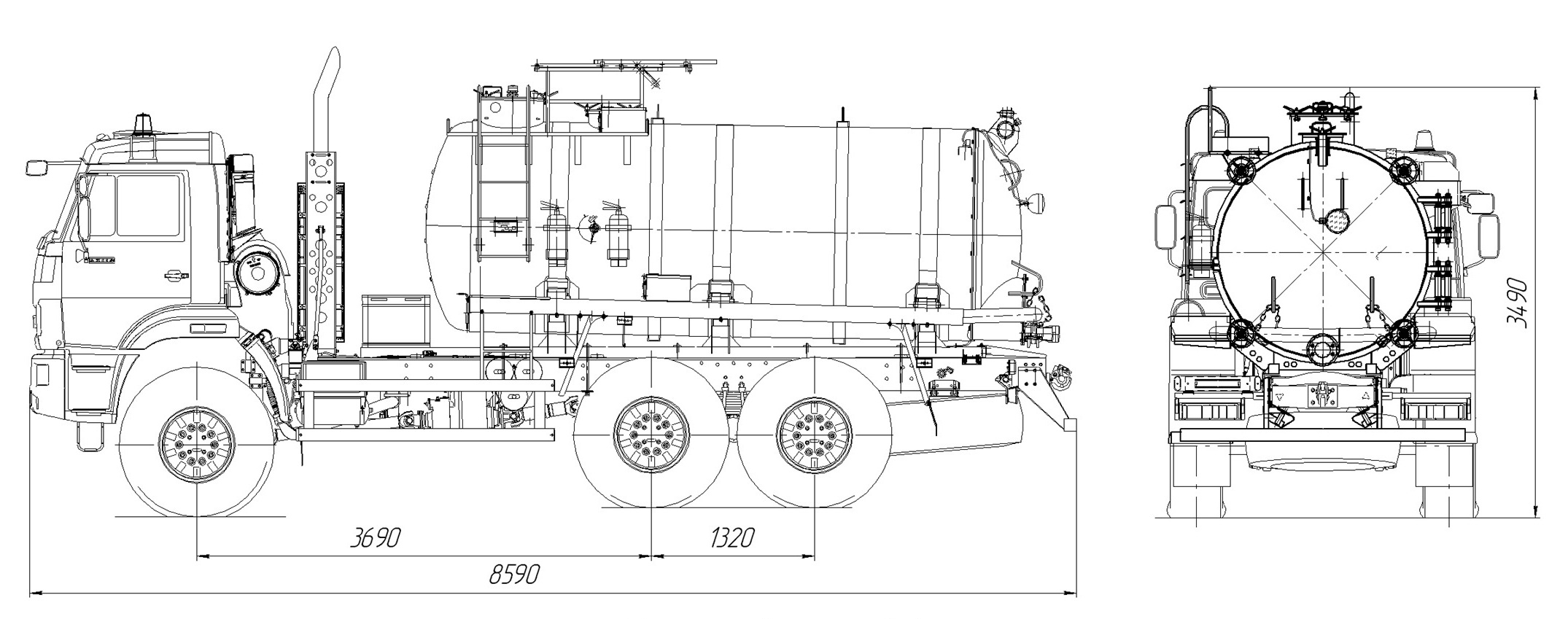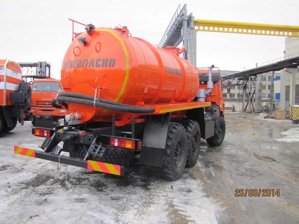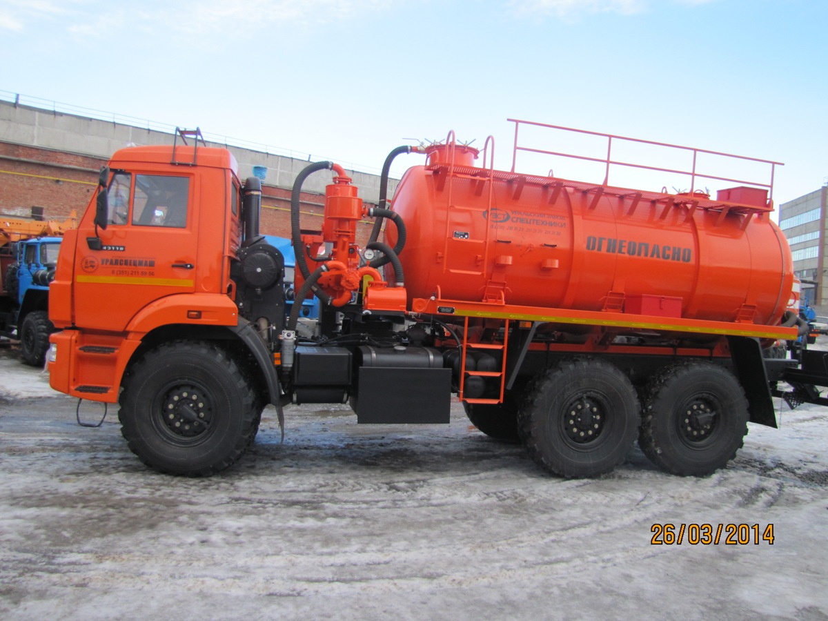 Камаз 43118 без спального места, объем емости 10 куб.м., насос КО-505А или ВК-3М или ВК-6М2 или PNR122D, привод карданный или шкивоременный или клиноременный, сечение цистерны круглое, средства безопасности, доработка шасси под ЛВЖ.