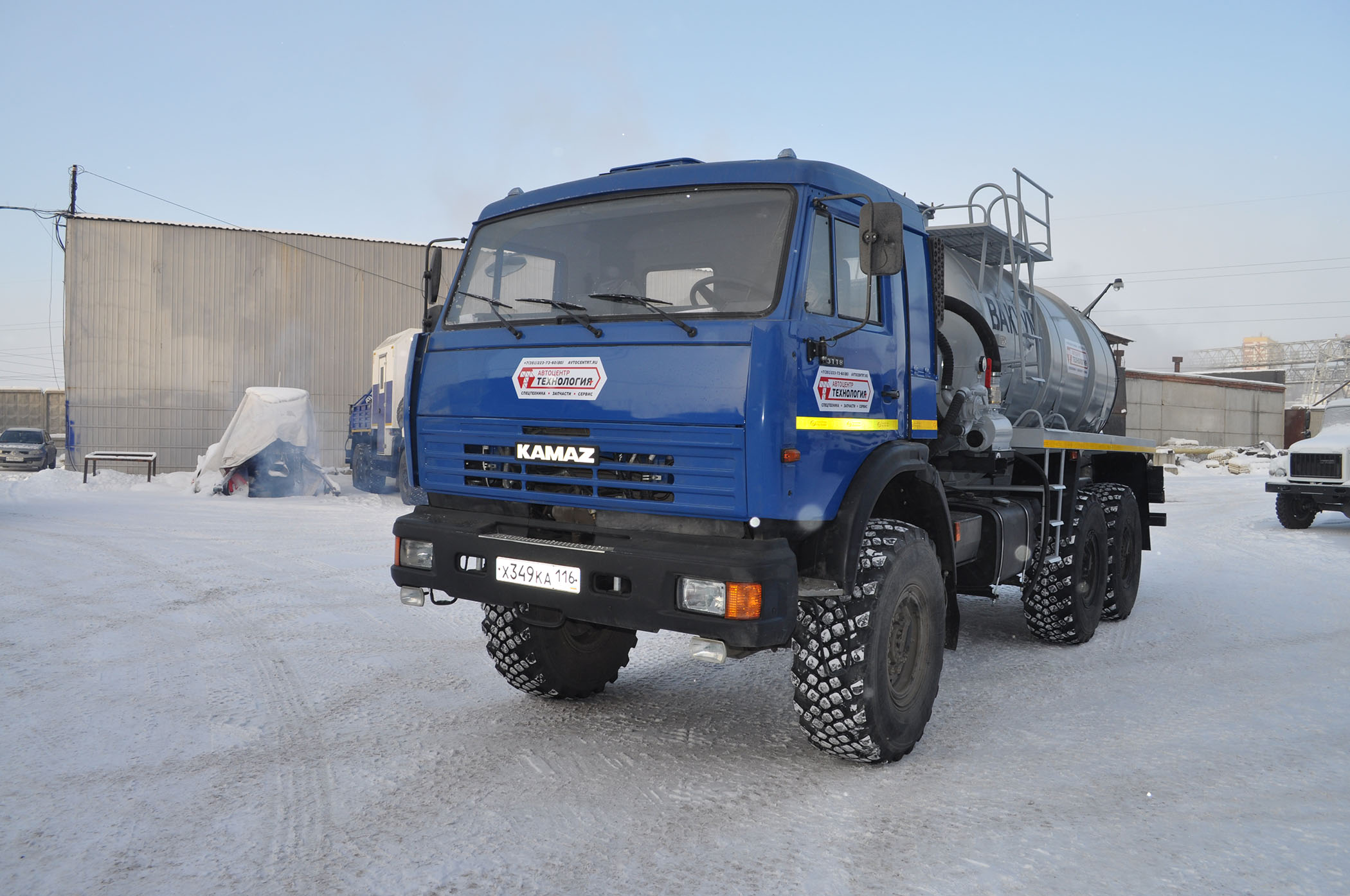 Камаз 43118 без спального места, объем емости 10 куб.м., насос КО-505А или ВК-3М или ВК-6М2 или PNR122D, привод карданный или шкивоременный или клиноременный, сечение цистерны круглое, средства безопасности, доработка шасси под ЛВЖ.