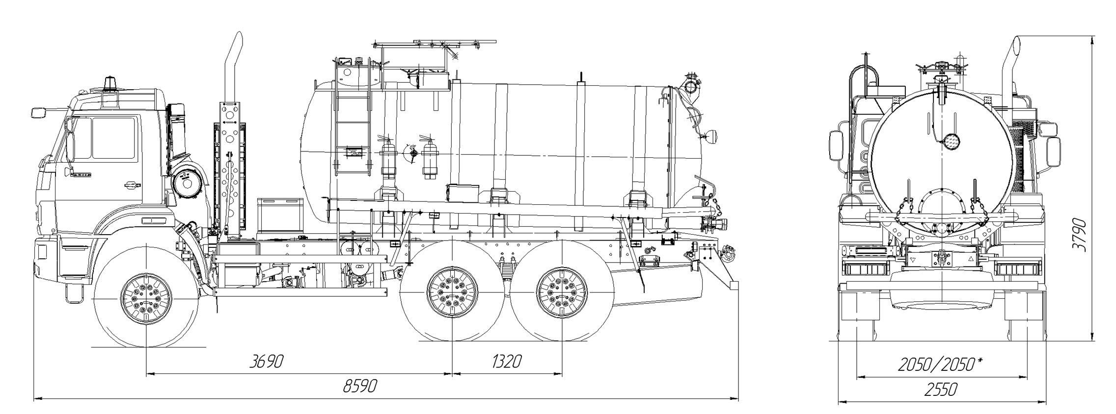 Камаз 43118 без спального места, объем емости 10 куб.м., насос КО-505А или ВК-3М или ВК-6М2 или PNR122D, привод карданный или шкивоременный или клиноременный, сечение цистерны круглое, средства безопасности, доработка шасси под ЛВЖ.