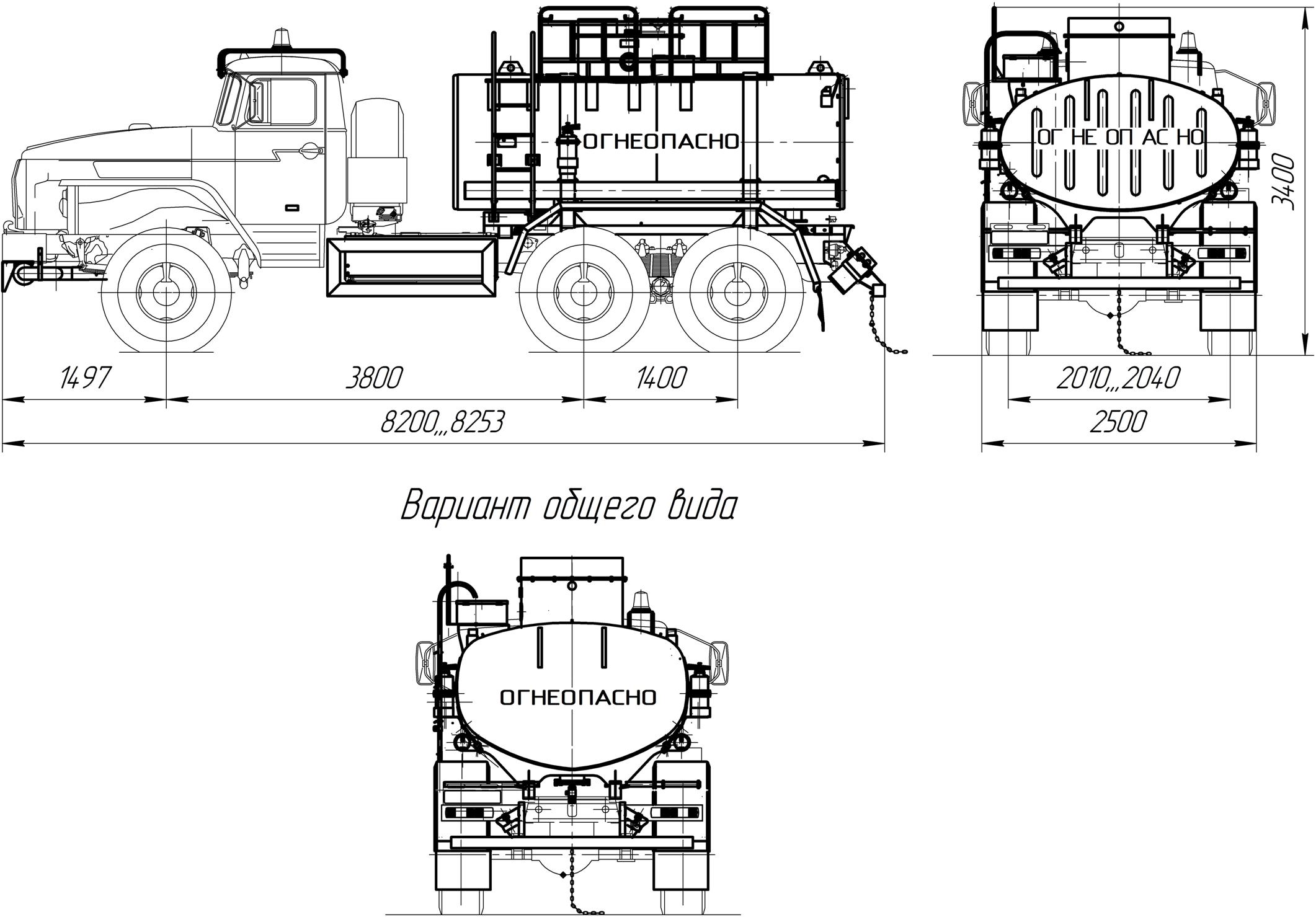 УРАЛ-5557-1151-60 (70) без спального места, объем емости 9 куб.м., насос СВН-80, привод карданный, сечение цистерны чемоданное или элипсное, средства безопасности, доработка шасси под ЛВЖ.