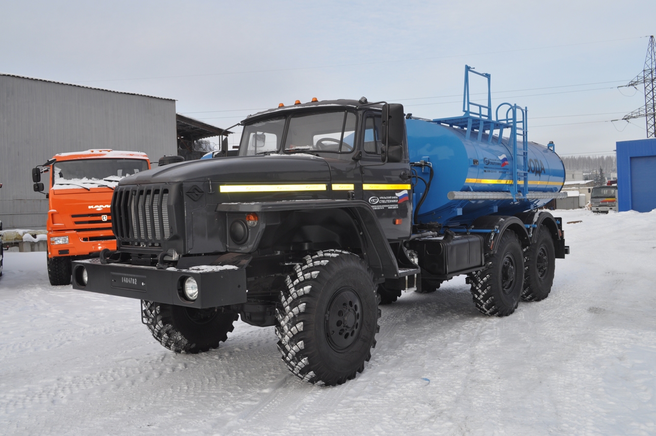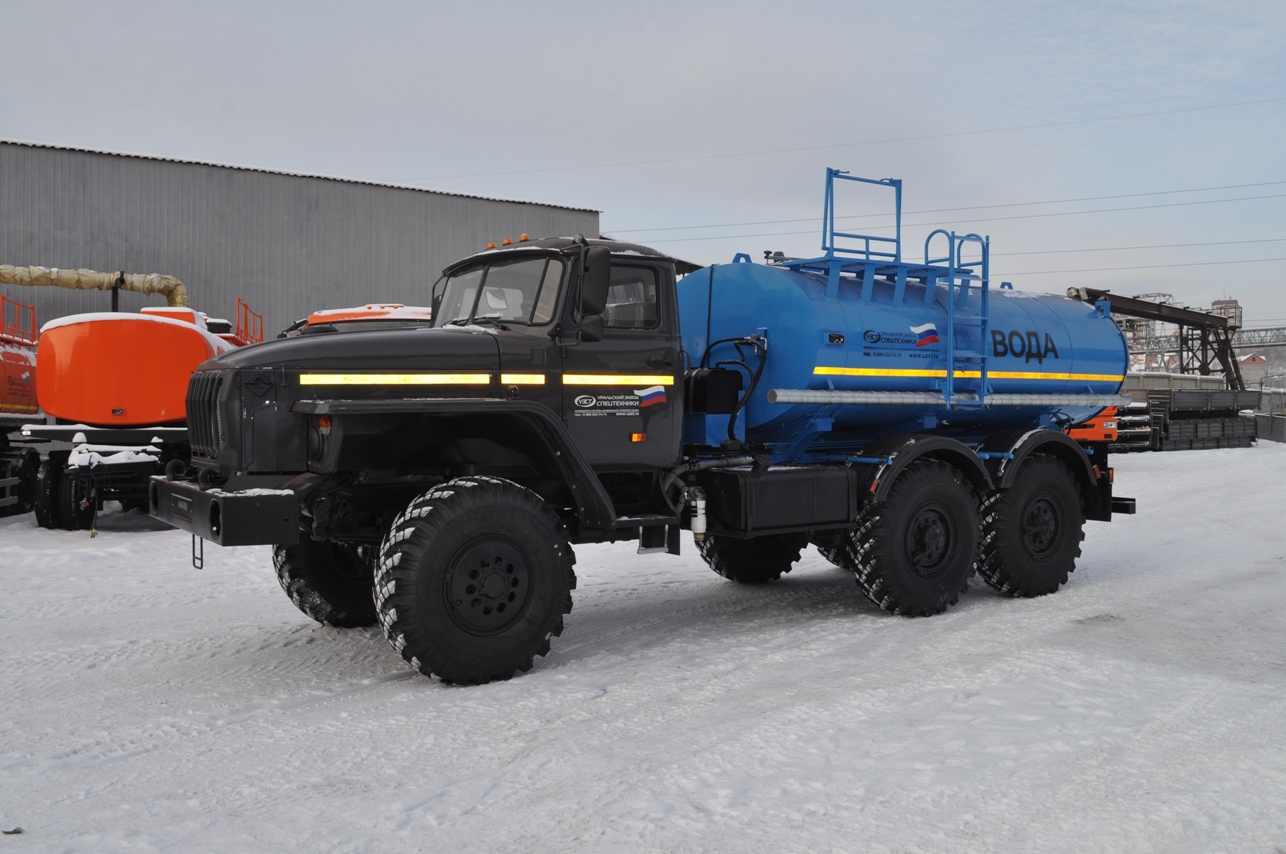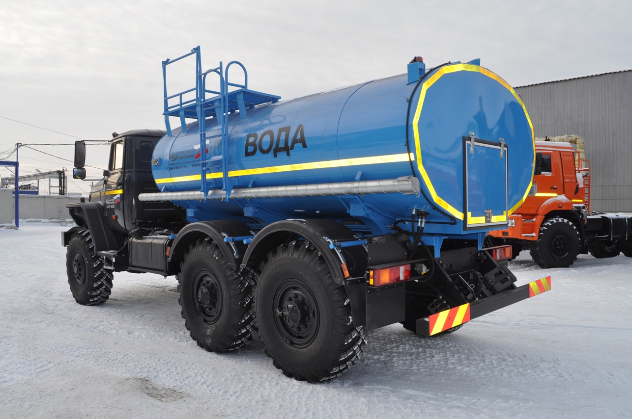 УРАЛ 4320-4151-81М со спальным местом, объем емкости от 6,0 до 7,5 куб.м., пищевая сталь, утепление, сечение цистерны эллипсное или чемоданное, средства безопасности.