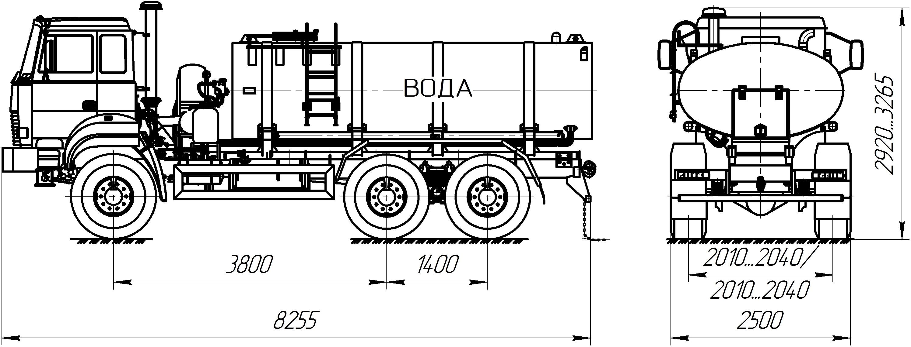 УРАЛ 4320-4151-81М со спальным местом, объем емкости от 6,0 до 7,5 куб.м., пищевая сталь, утепление, сечение цистерны эллипсное или чемоданное, средства безопасности.