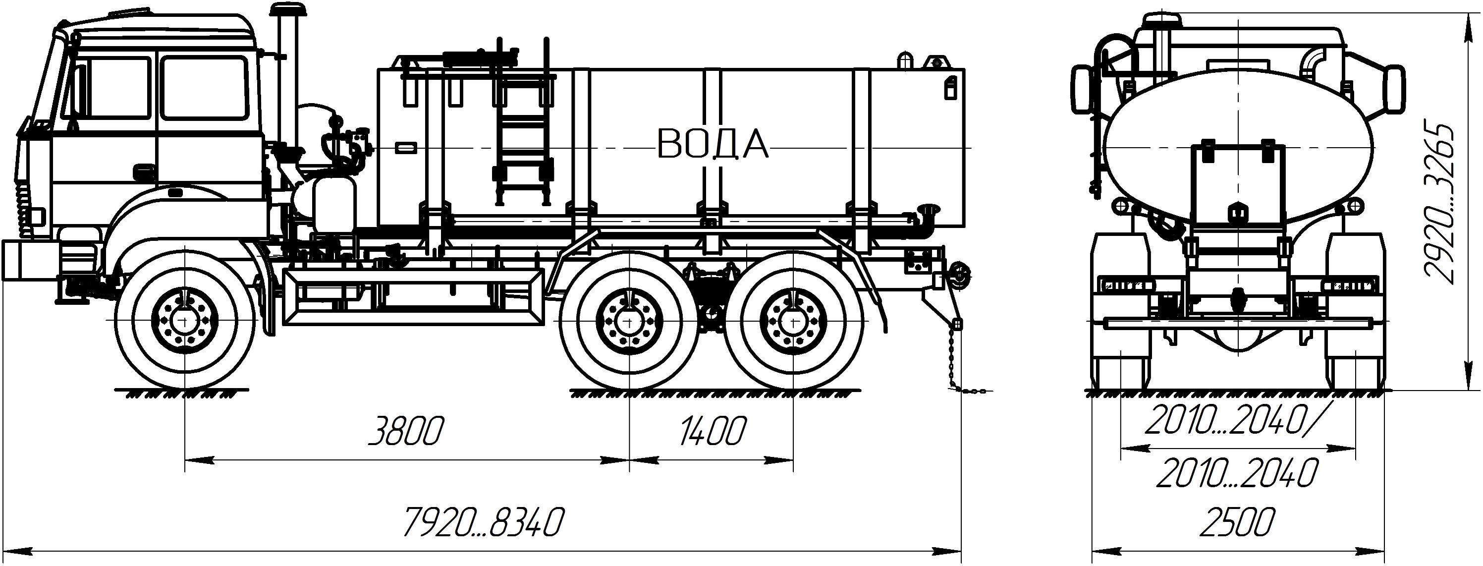 Автоцистерна для питьевой воды АЦПТ 8,0-10,0 УЗСТ 6620-09 на шасси УРАЛ 55571-4121-80М (82М) со спальным местом Автоцистерна для питьевой воды АЦПТ 8,0-10,0 УЗСТ 6620-09 на шасси УРАЛ 55571-4121-80М (82М) со спальным местом