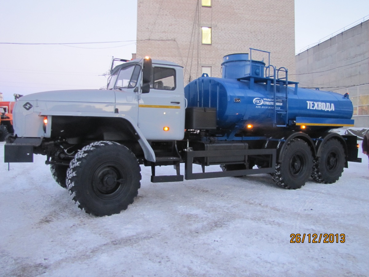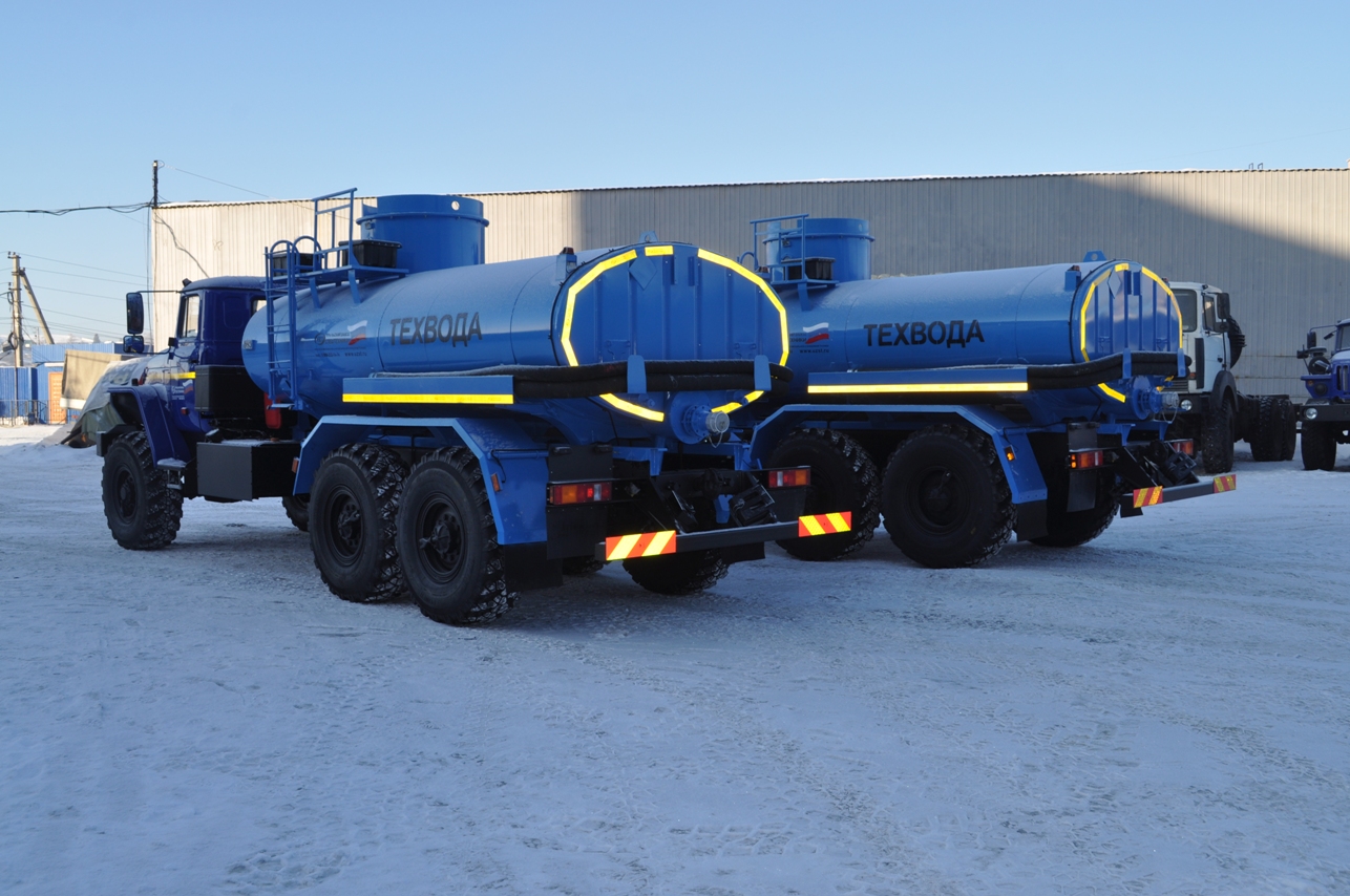 УРАЛ 4320-4972-80 со спальным местом, объем емкости 12,0 куб.м., подогрев емкости, утепление емкости 100 мм, сталь 09Г2С, сечение цистерны чемоданное, насос для закачки и выкачки воды, подогрев насоса, передний гидроповоротный отвал с увеличенной шириной очистки, задняя поливомоечная рейка с подогревом, подогрев гидросистемы, подогрев топливной системы, подогрев насоса.