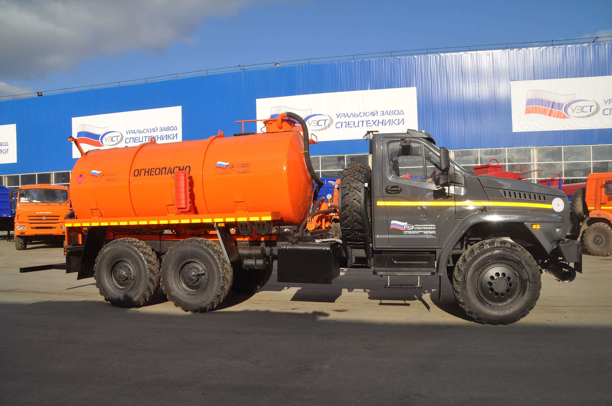 УРАЛ 4320-4972-80 со спальным местом, объем емости 10 куб.м., насос КО-505А или ВК-3М или ВК-6М2 или PNR122D, привод клиноременный, сечение цистерны круглое, средства безопасности, доработка шасси под ЛВЖ.