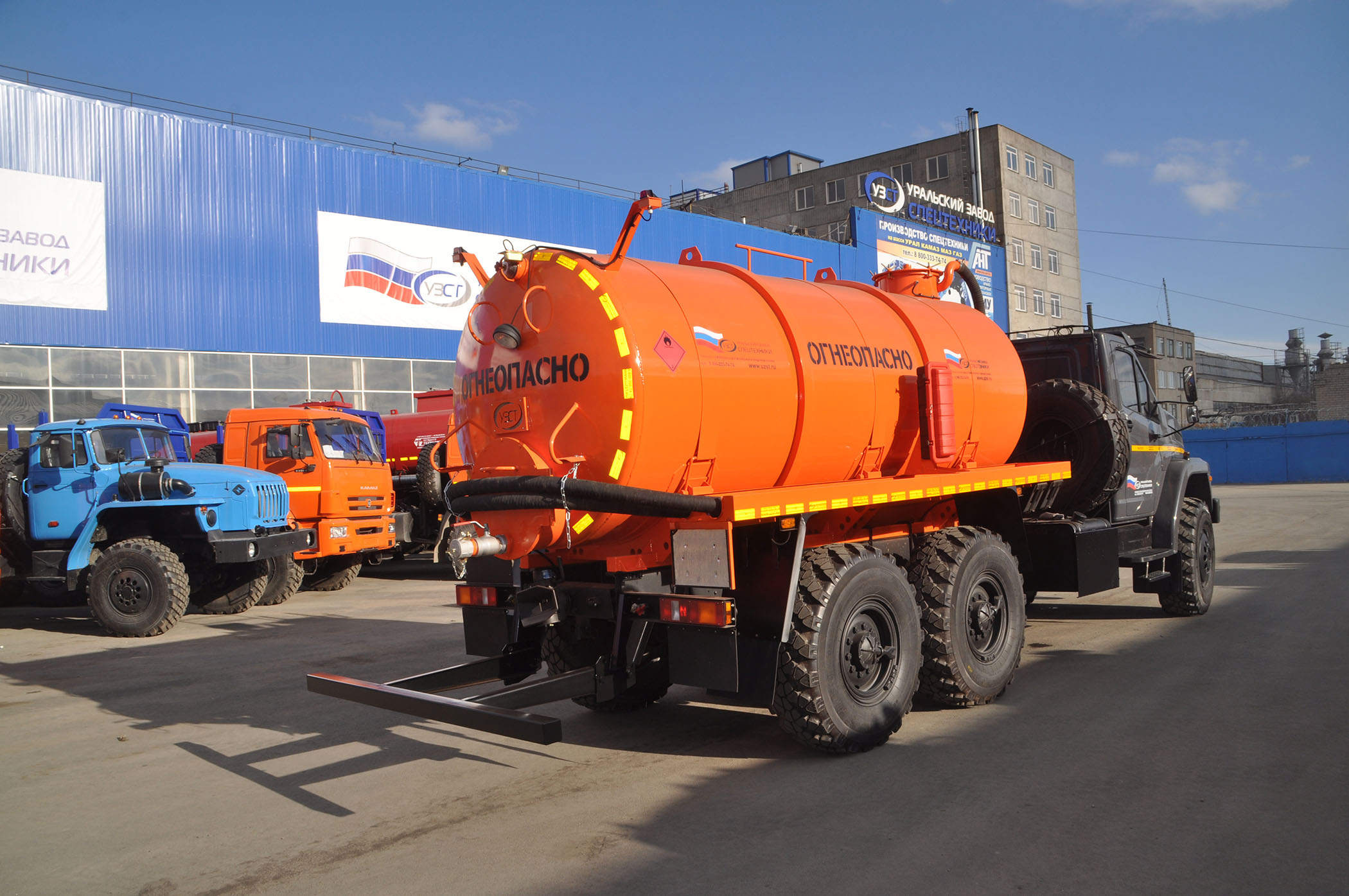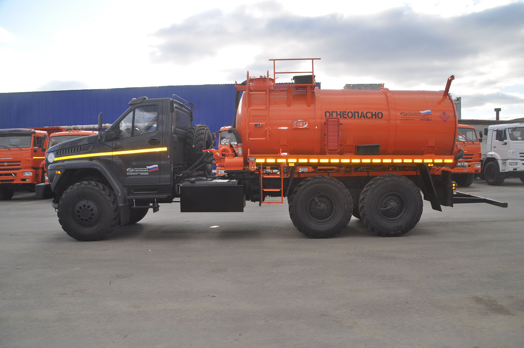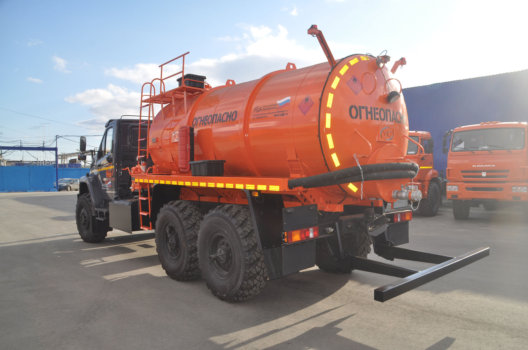 УРАЛ 4320-1951-60 (70) без спального места, объем емости 10 куб.м., насос КО-505А или ВК-3М или ВК-6М2 или PNR122D, привод клиноременный, сечение цистерны круглое, средства безопасности, доработка шасси под ЛВЖ.