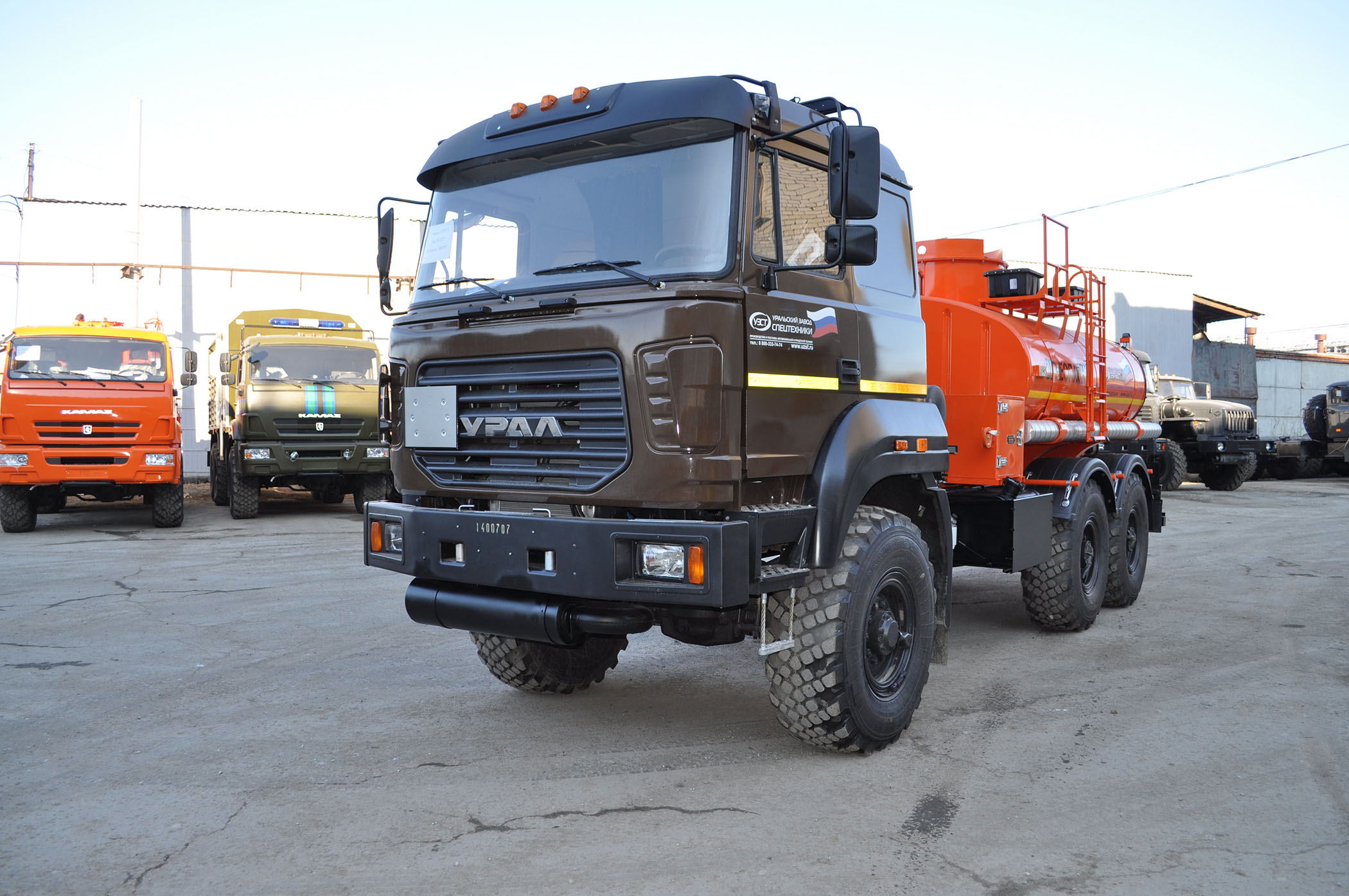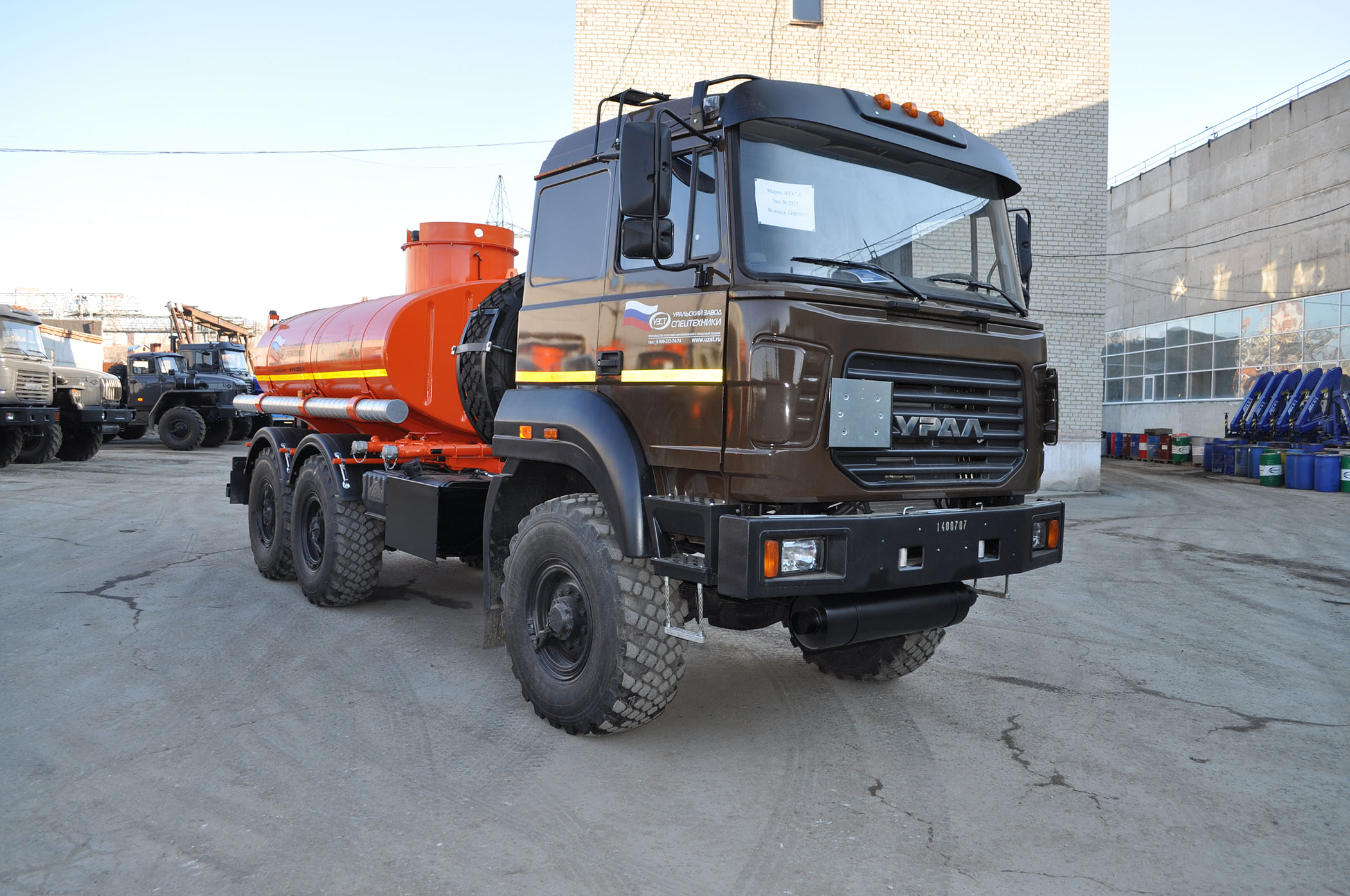 УРАЛ 4320-4112-81 со спальным местом, объем емкости 6,5 куб.м.1 секция, насос СВН-80, привод карданный, сечение цистерны чемоданное или элипсное, средства безопасности, доработка шасси под ЛВЖ.