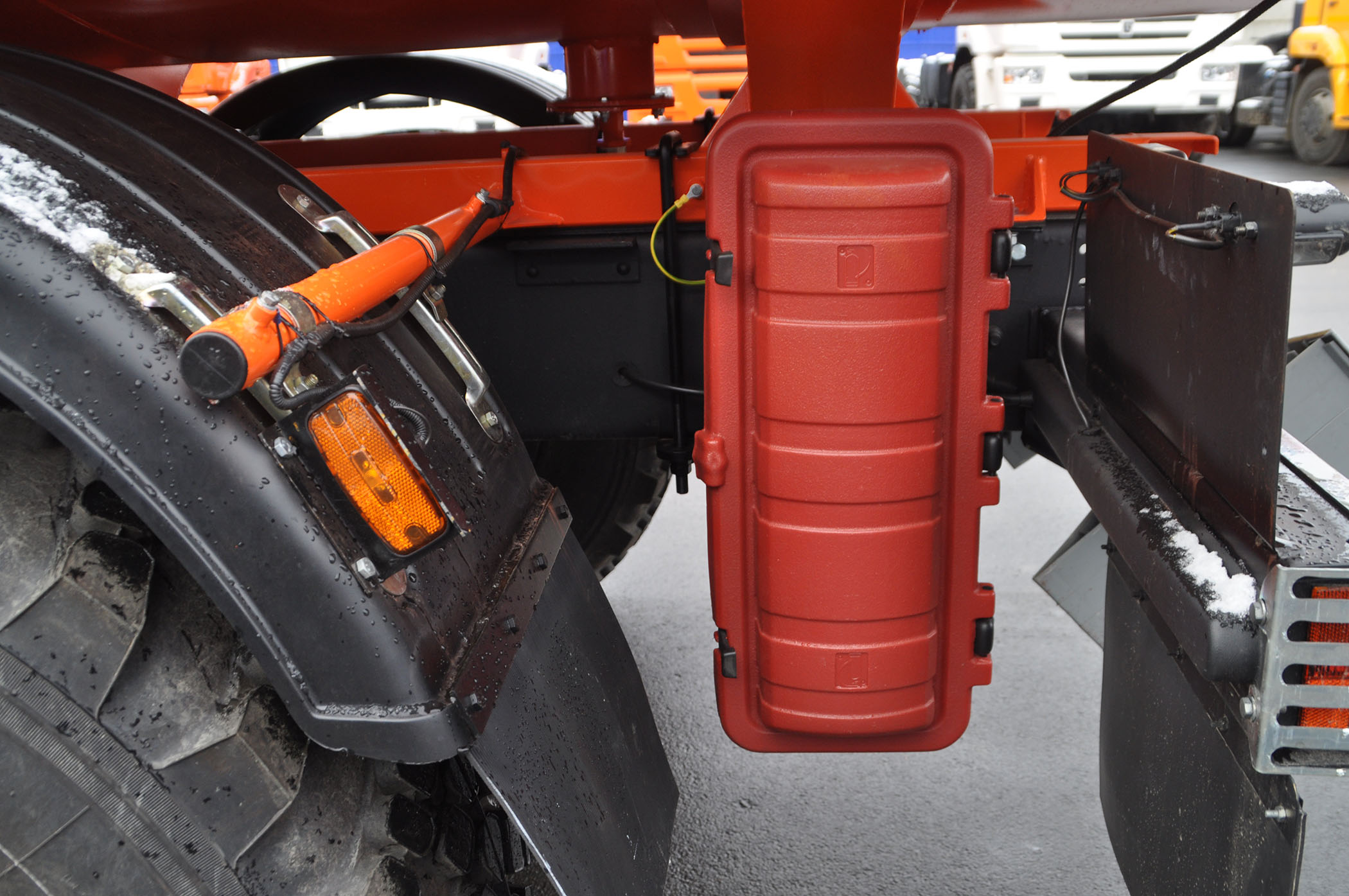 Проблесковый маячок Огнетушители Медицинская аптечка Знак аварийной остановки Упор противооткатный Ящик для песка Ящик для кошмы Заднее защитное устройство (отбойник) |