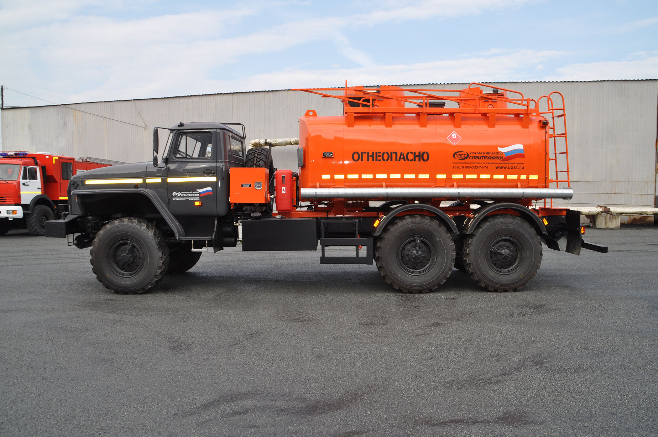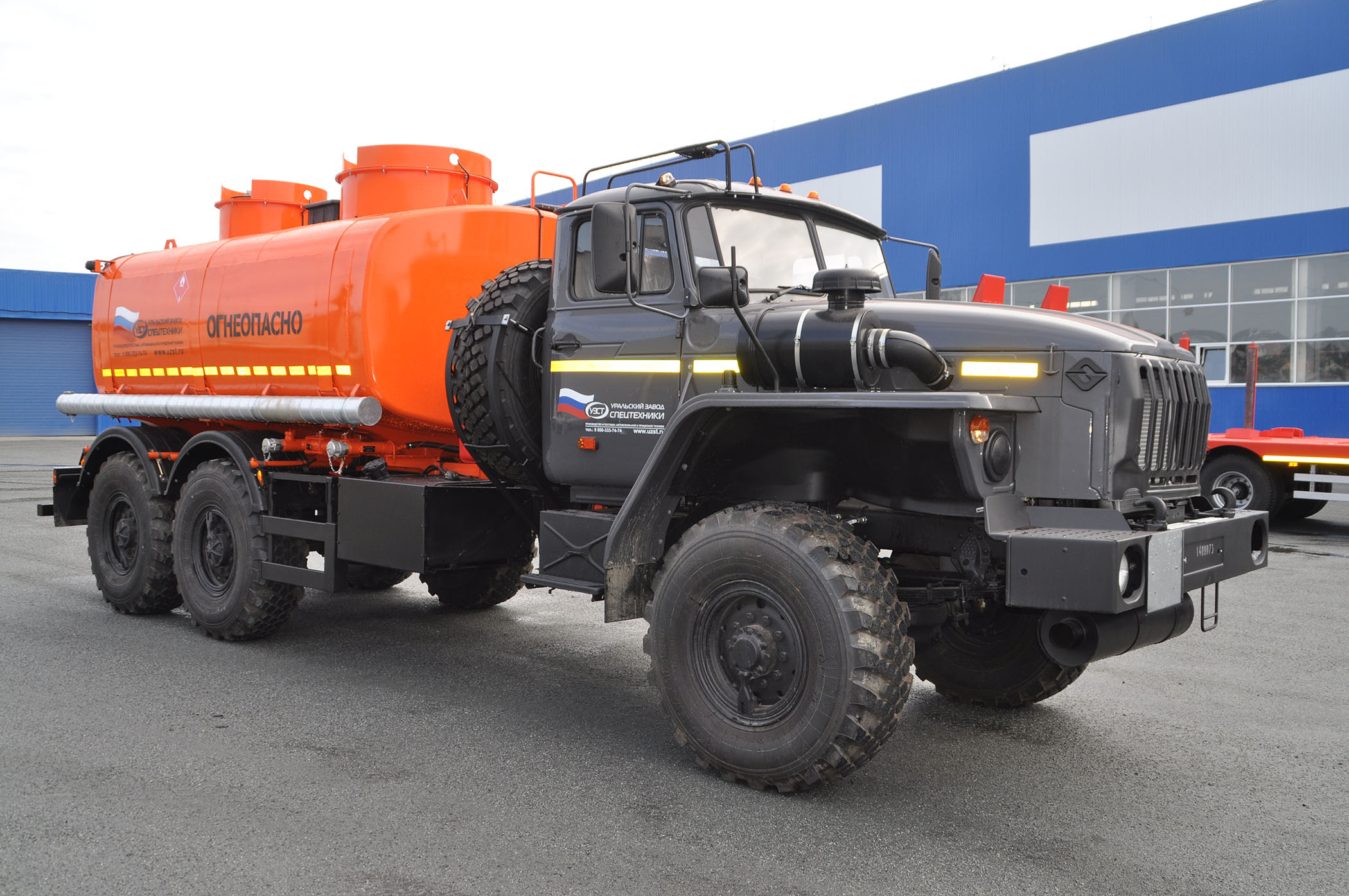 УРАЛ 4320-4972-80 со спальным местом, объем емкости 10 куб.м.1 секция, насос СВН-80, привод карданный, сечение цистерны чемоданное или элипсное, средства безопасности, доработка шасси под ЛВЖ.