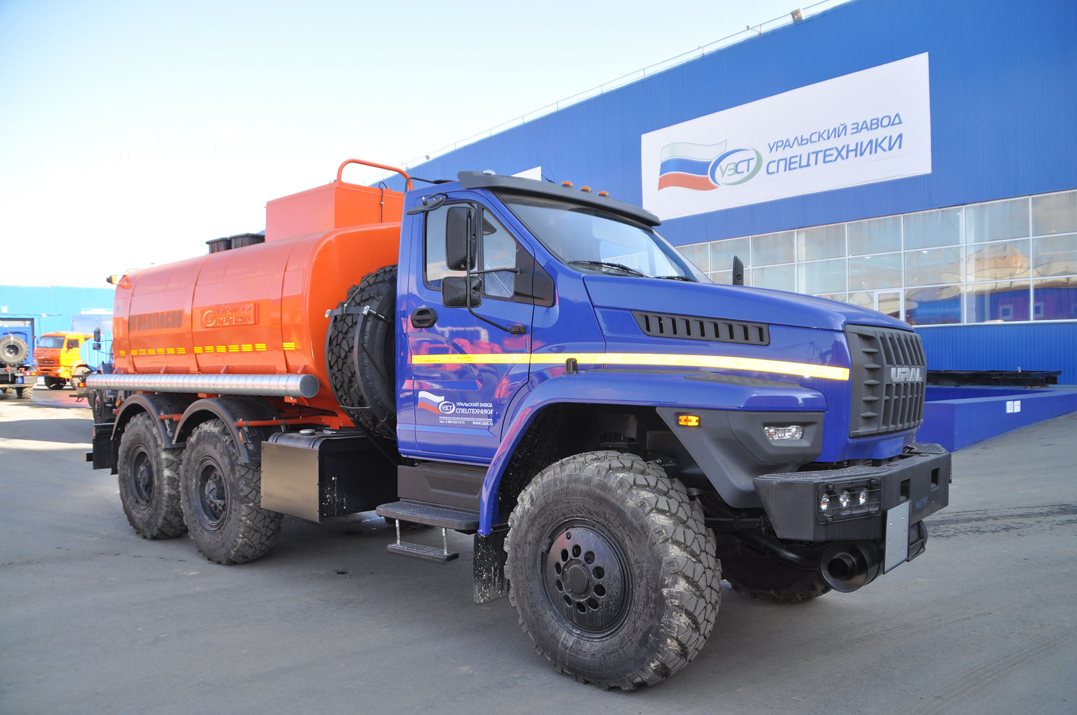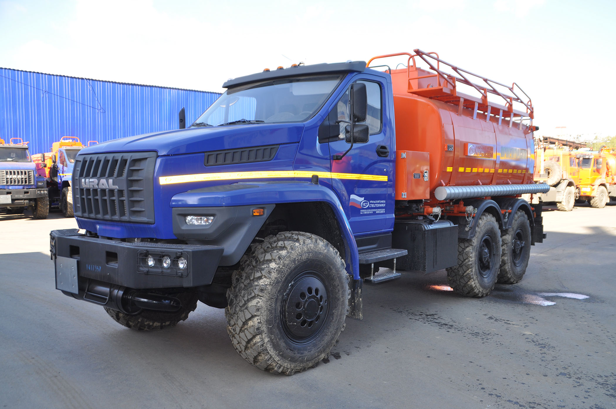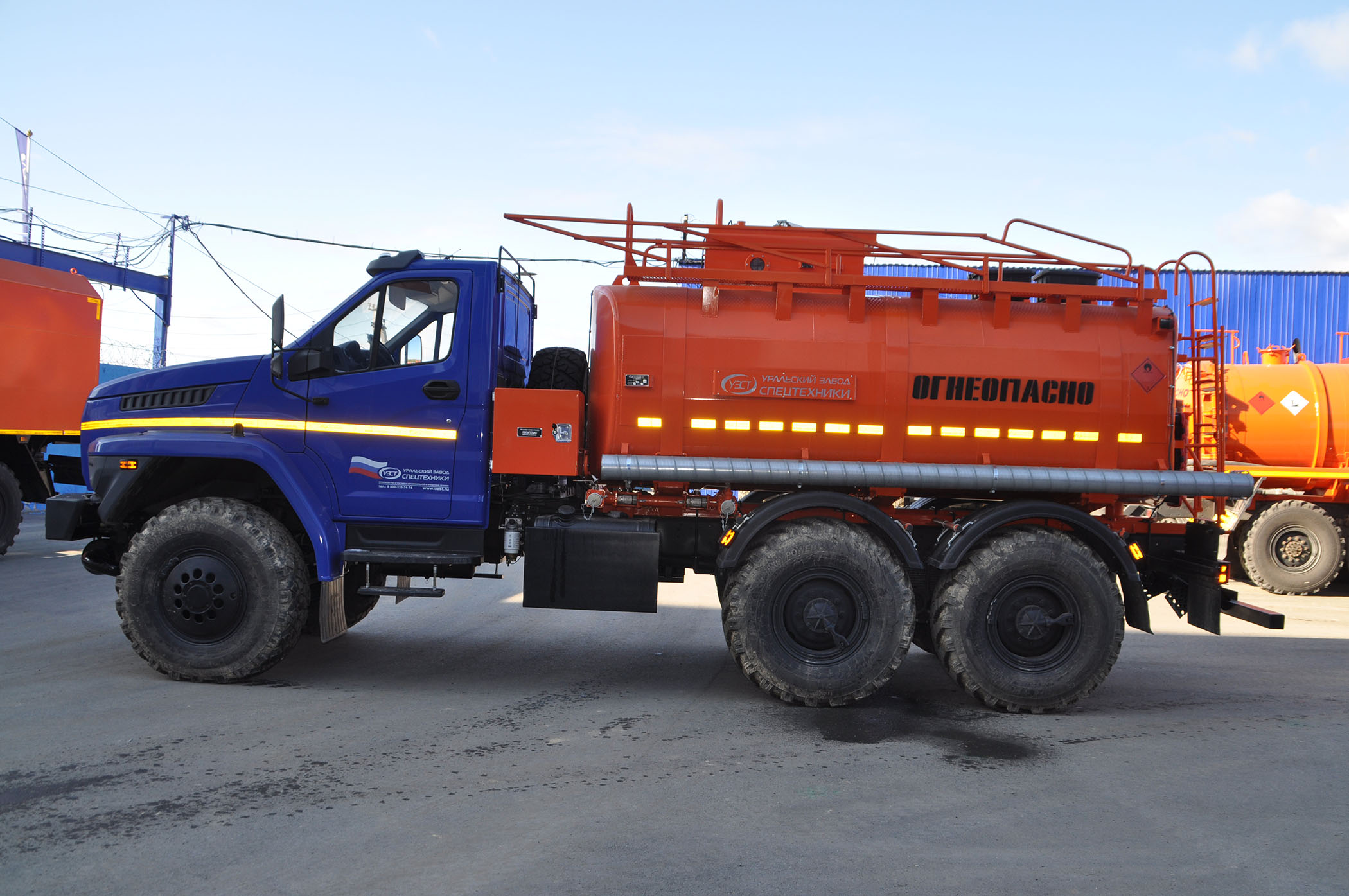 УРАЛ 5557-4112-80 со спальным местом, объем емкости 7,5 куб.м.1 секция, насос СВН-80, привод карданный, сечение цистерны чемоданное или элипсное, средства безопасности, доработка шасси под ЛВЖ.