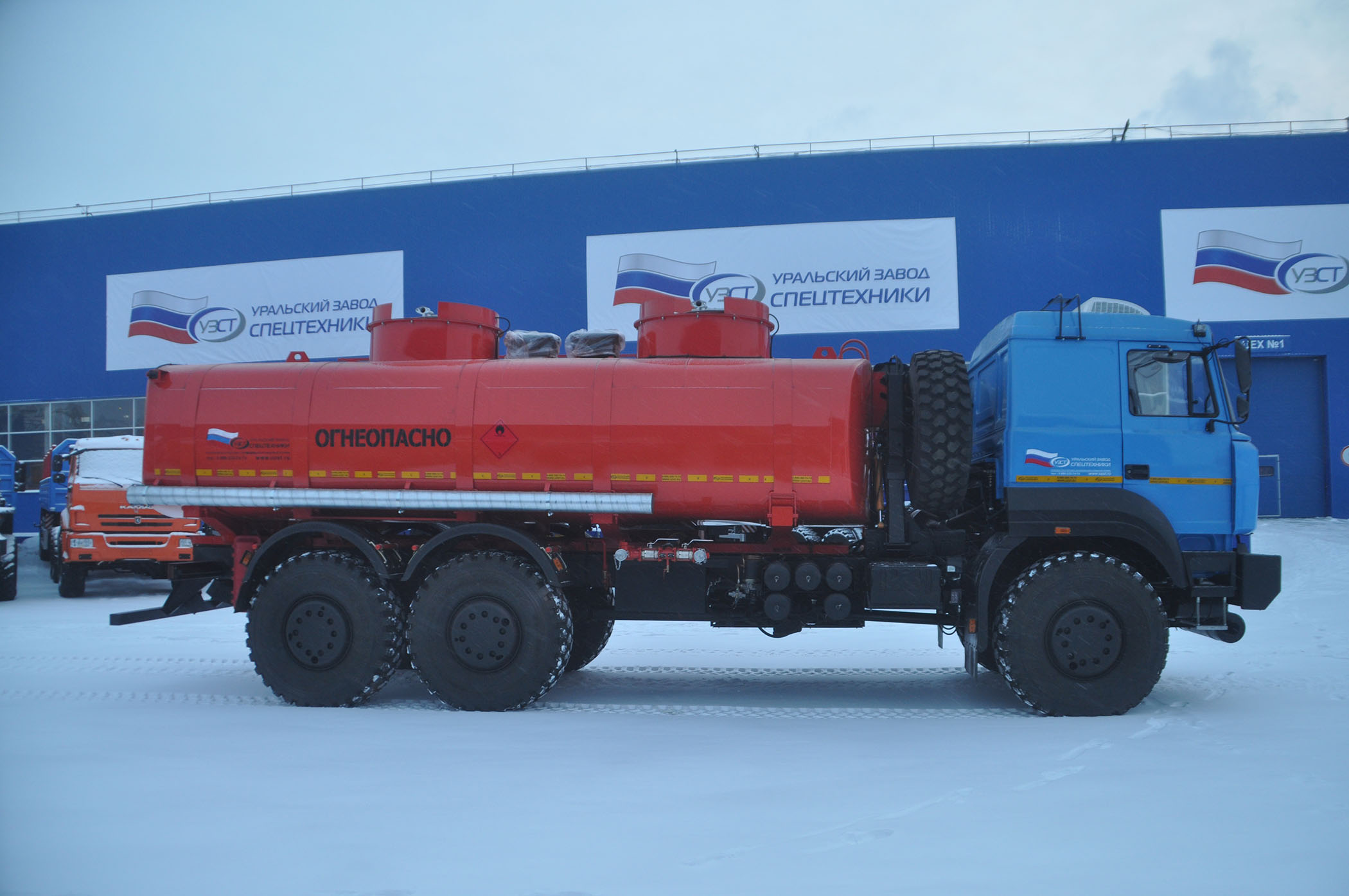 6х6, 412 л.с., 19 м³, 1 секция, насос СЦЛ-20/24, чемоданное сечение, УВТ вмонтирован в заднюю часть цистерны