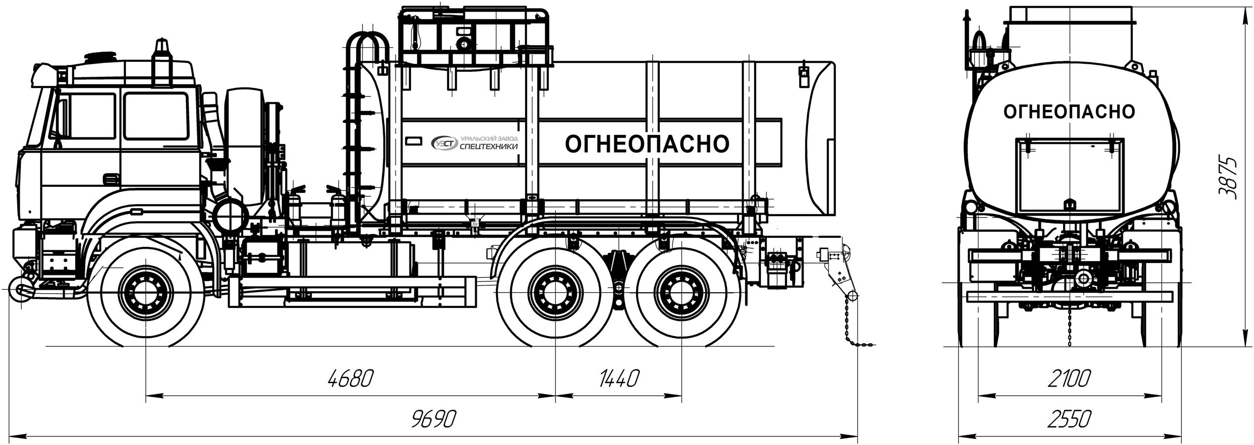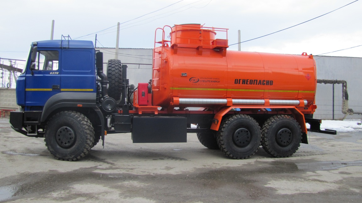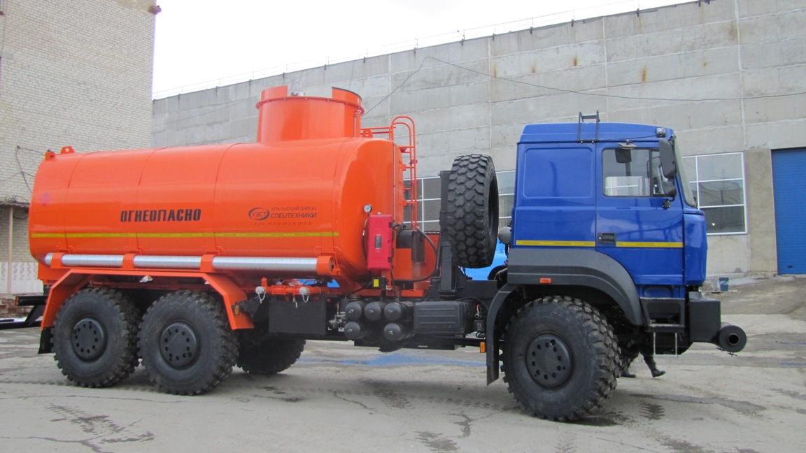 6х6, 230 л.с., 9 м³, 1 или 2 секции, насос УЗСТ СВН-80 / СЦЛ-00А, эллиптическое сечение, УВТ между кабиной и цистерной с левой стороны