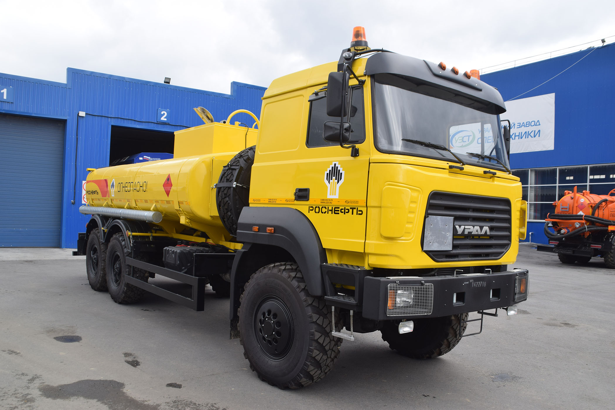 УРАЛ 63701-1951 со спальным местом, объем емости 19 куб.м., насос СЦЛ-00А, привод карданный, сечение цистерны чемоданное или эллипсное, средства безопасности, доработка шасси под ЛВЖ.