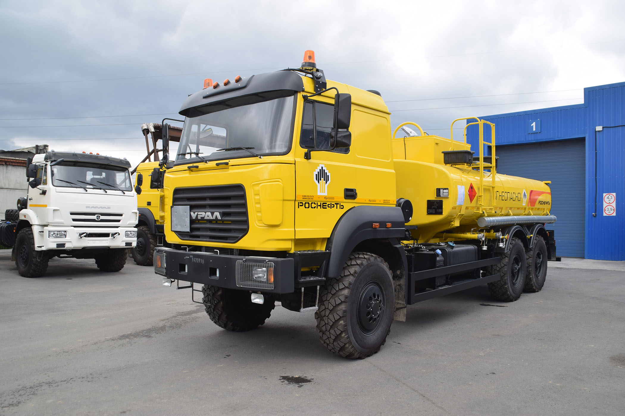 УРАЛ 4320-1912-60(70) без спального места, объем емости 10 куб.м., насос СЦЛ-00А, привод карданный, сечение цистерны чемоданное или эллипсное, средства безопасности, доработка шасси под ЛВЖ.