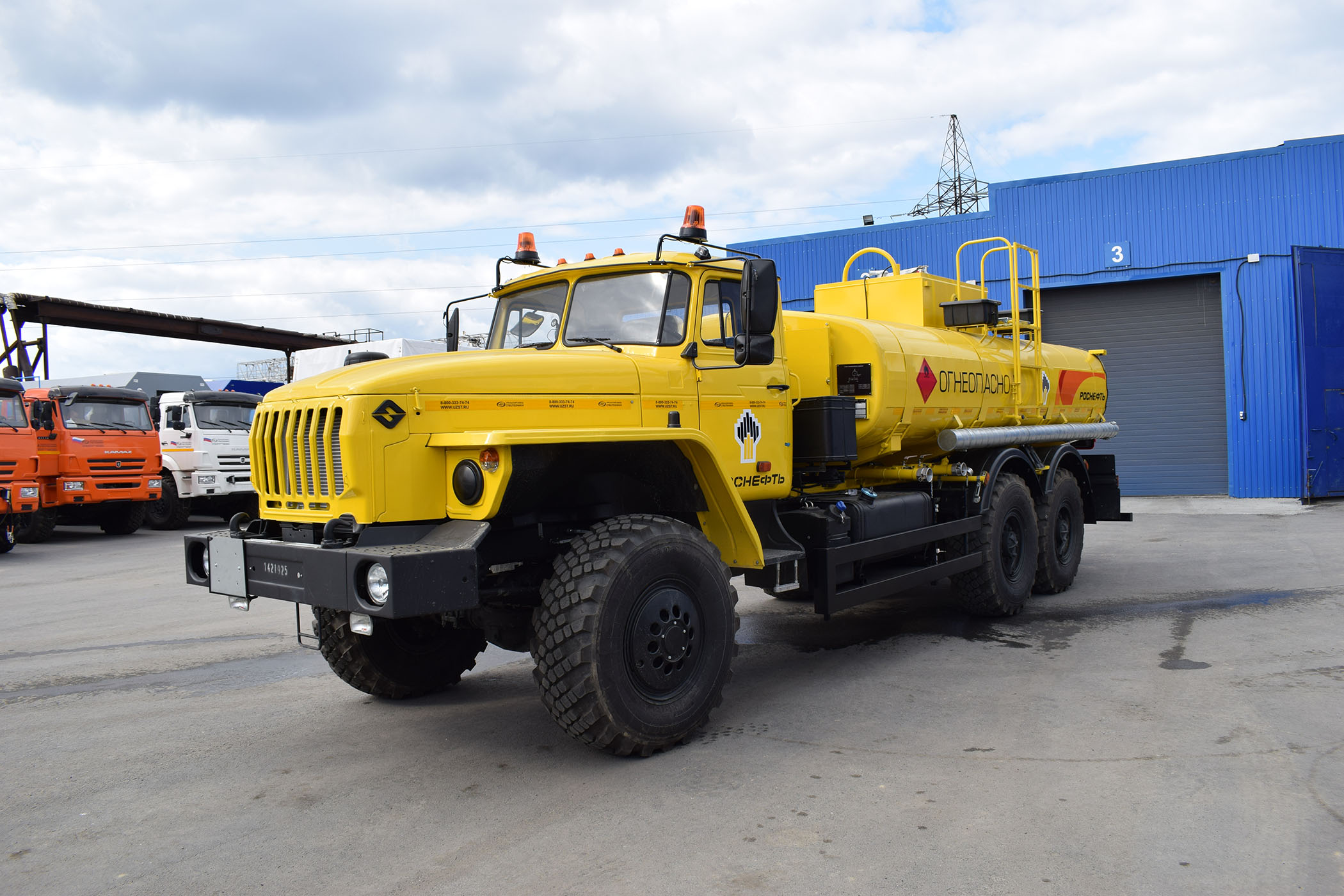 УРАЛ 4320-1912-60(70) без спального места, объем емости 10 куб.м., насос СЦЛ-00А, привод карданный, сечение цистерны чемоданное или эллипсное, средства безопасности, доработка шасси под ЛВЖ.