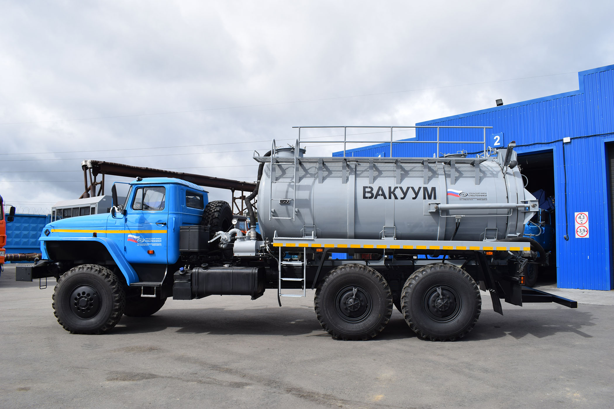Технические характеристики и комплектация вакуумной цистерны МВ-10 с гидравлическим приводом днища на шасси Урал 4320