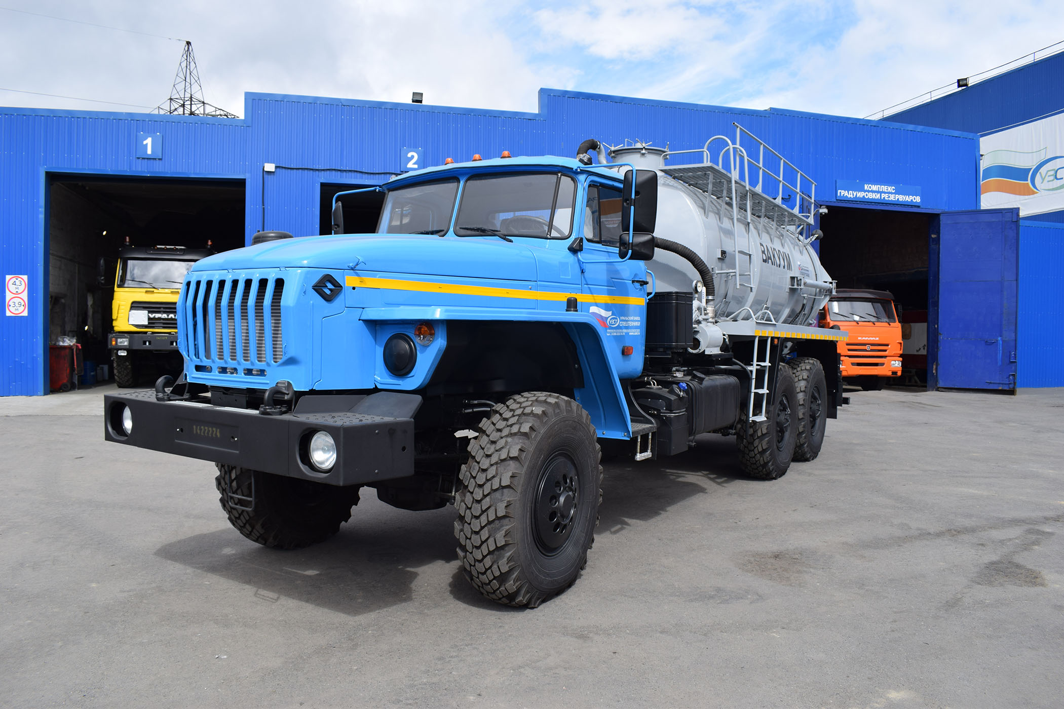УРАЛ 4320-6952-72Г38 без спального места, объем емости 10 куб.м., насос КО-505А или ВК-3М или ВК-6М2 или PNR122D, привод карданный или шкивоременный или клиноременный, сечение цистерны круглое, средства безопасности, доработка шасси под ЛВЖ.
