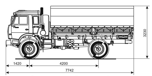 | Платформа | бортовая, с металлическими откидными бортами, в зависимости от комплектации оборудуется каркасом и тентом |