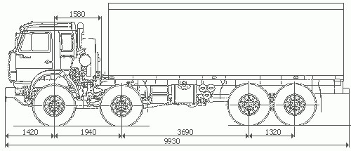 Колёсная формула: 6х6; Тип ошиновки: 1; Г/П,т.: 7,32; Мощность двиг. л.с.: 280; Модель КП: ZF9; П/ о главн. передачи: 5,94; V платф.куб.м./ монт.дл.рамы мм.: 18,1; Сп.место: 1; Шины: 425/85R21 390/95R20; Бак, л.: 2х210; ТСУ(высота ССУ): кр-пет.; МКБ, МОБ, дв. КАМАЗ-740.622-280, топл. ап.BOSCH, Common Rail, тент, каркас, рестайлинг.